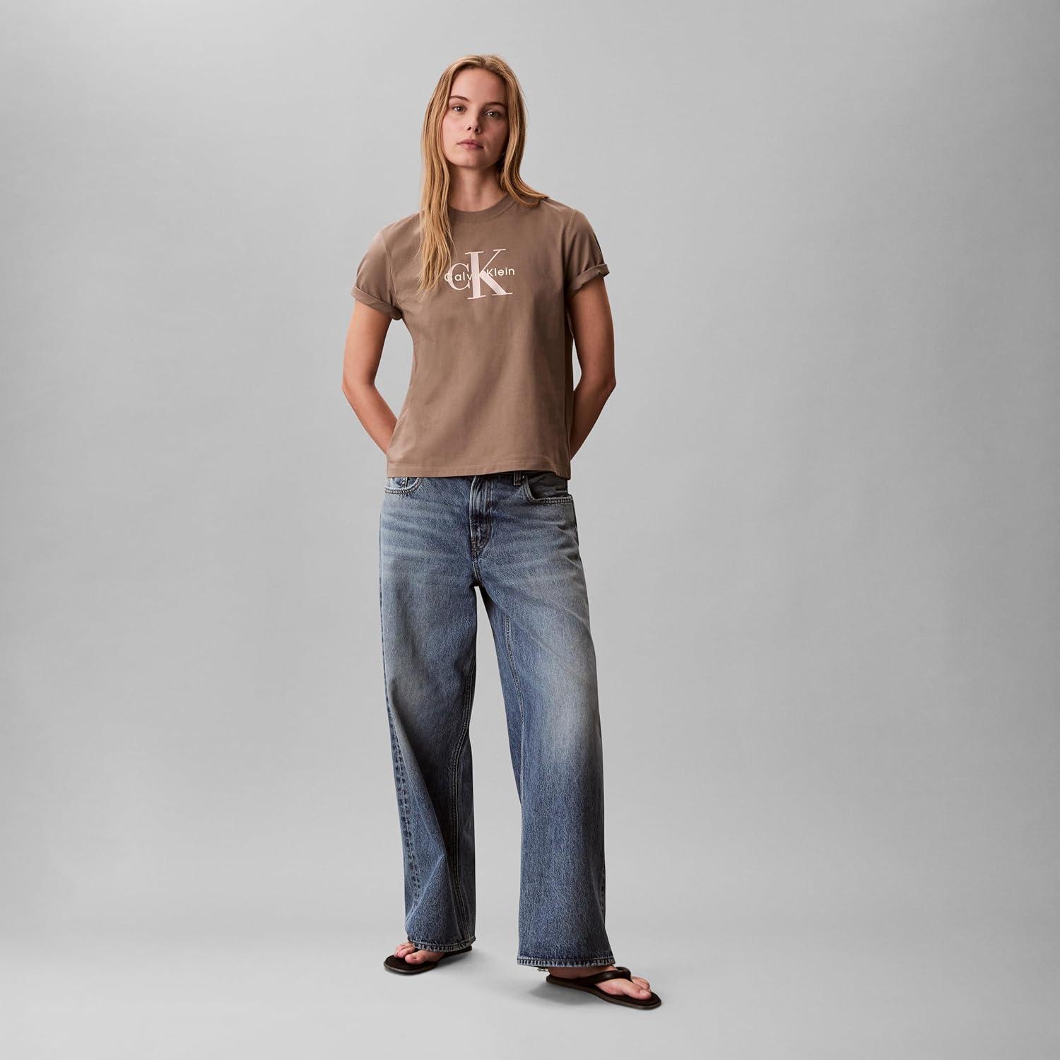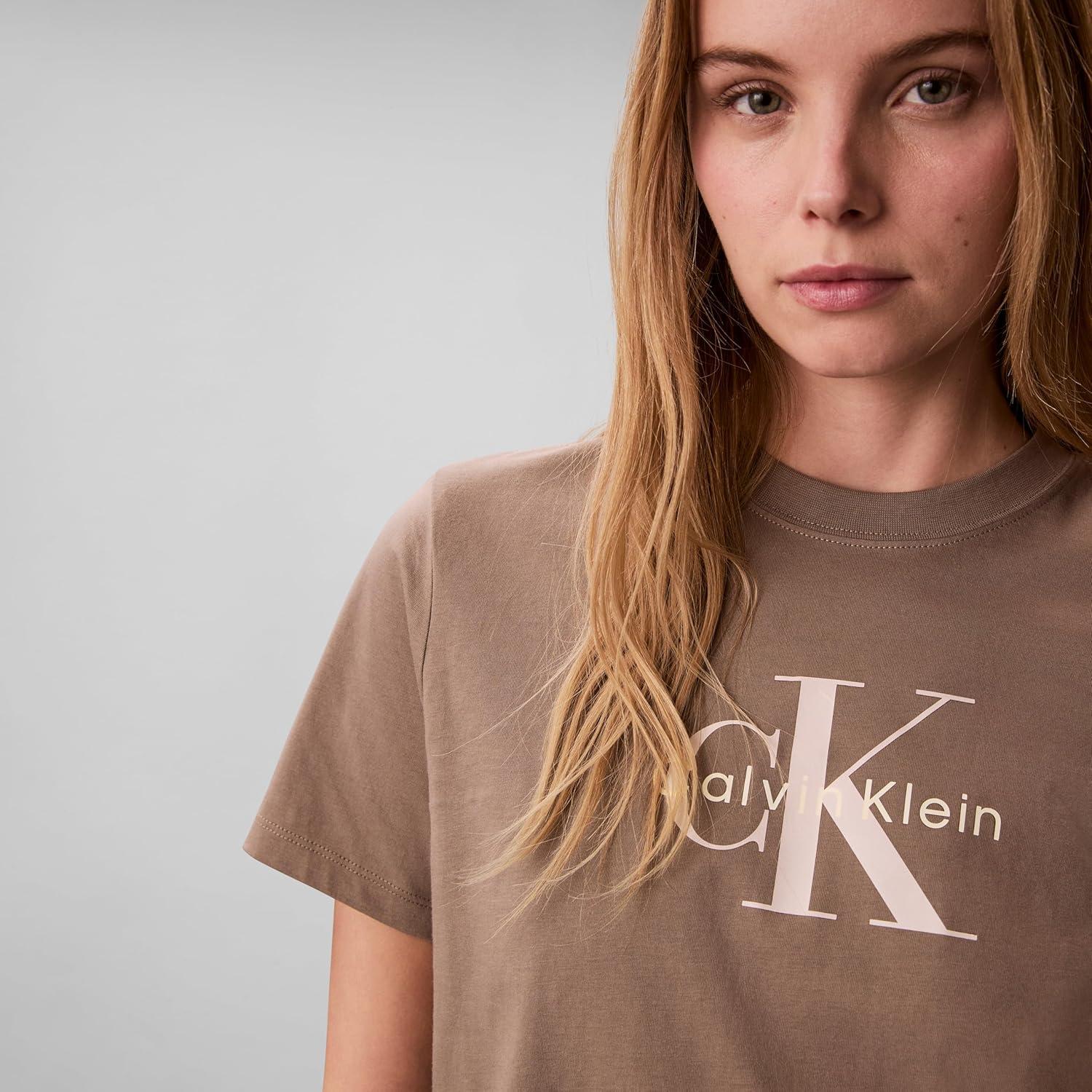 Calvin Klein Women's Monogram Logo Crewneck T-Shirt(Walnut)