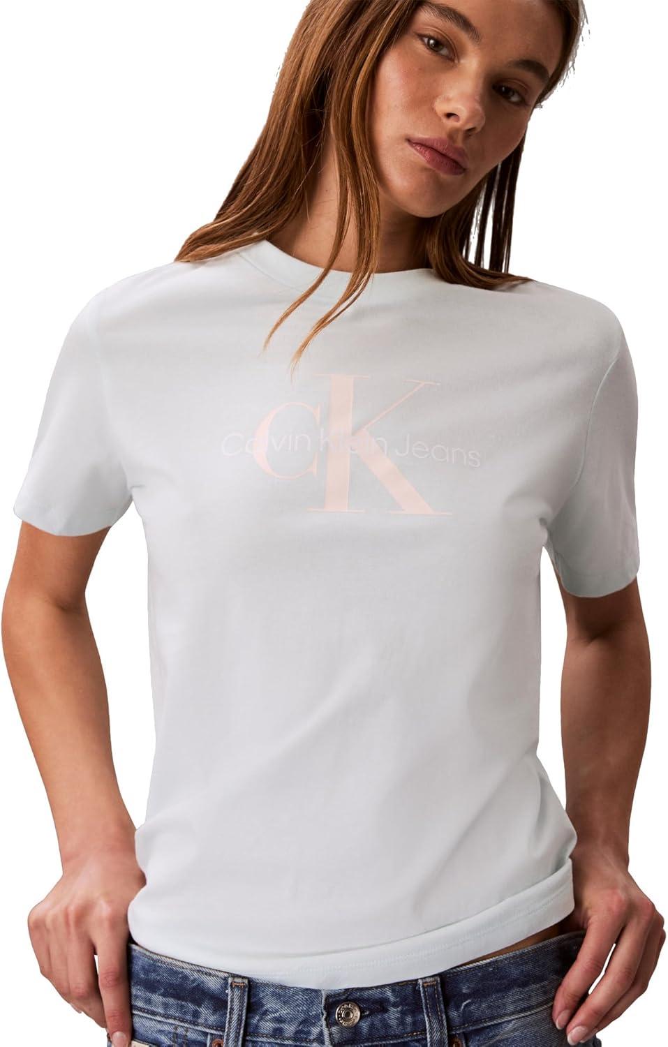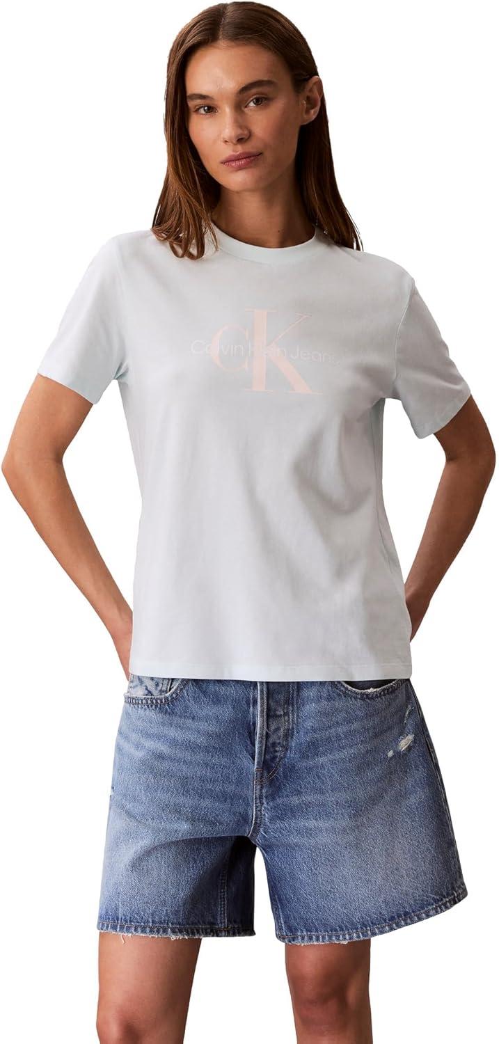 Calvin Klein Women’s Monogram Logo Crewneck T-Shirt(Whispering Blue)