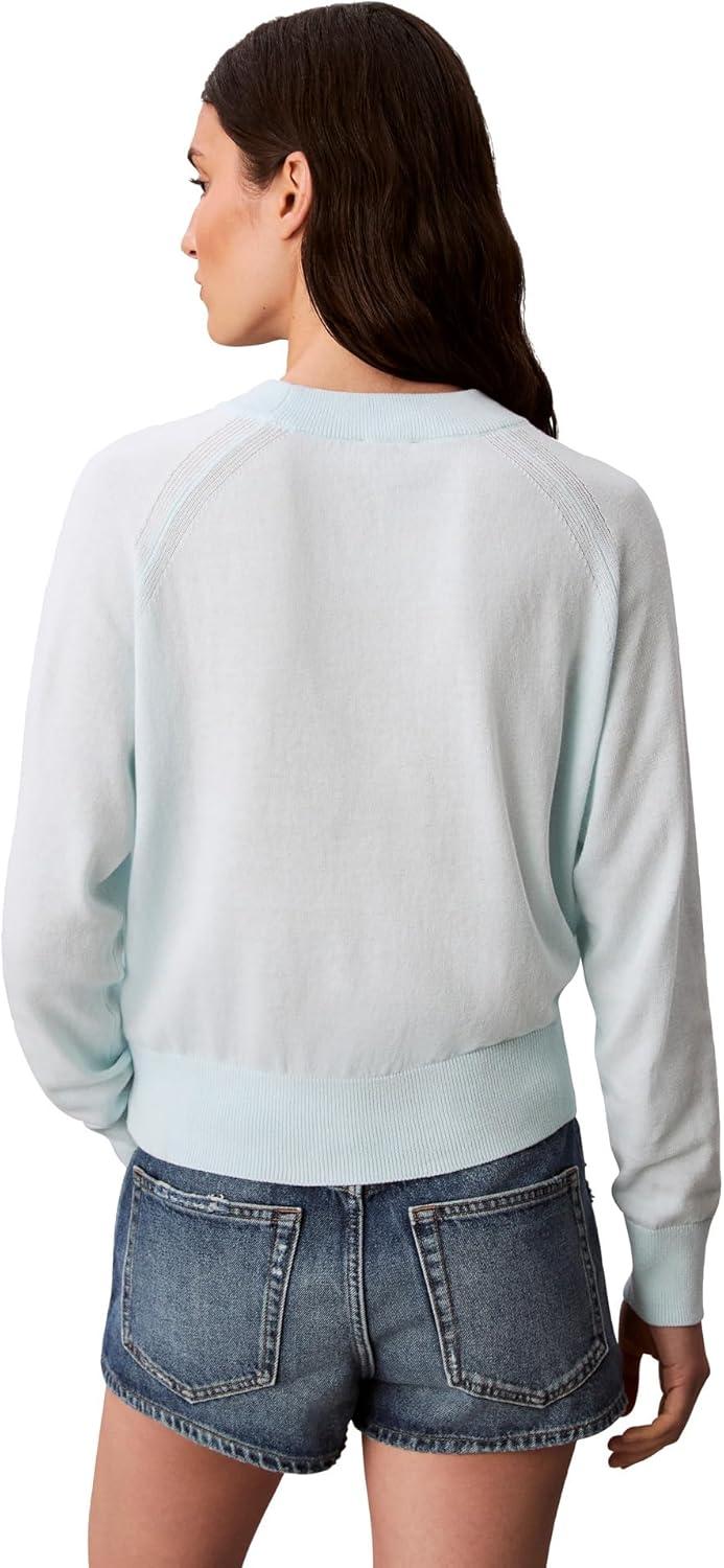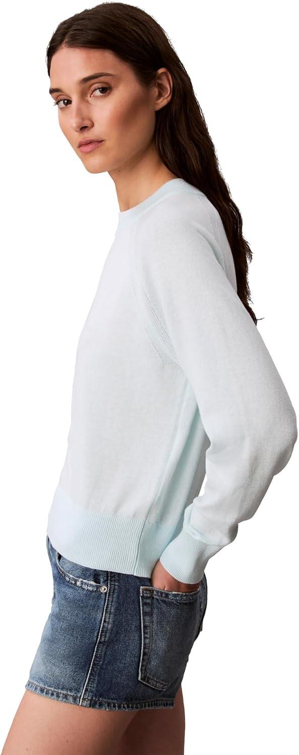 Calvin Klein Women’s Round Neck Sweater with Cable Knit Sleeve(Mascarpone)
