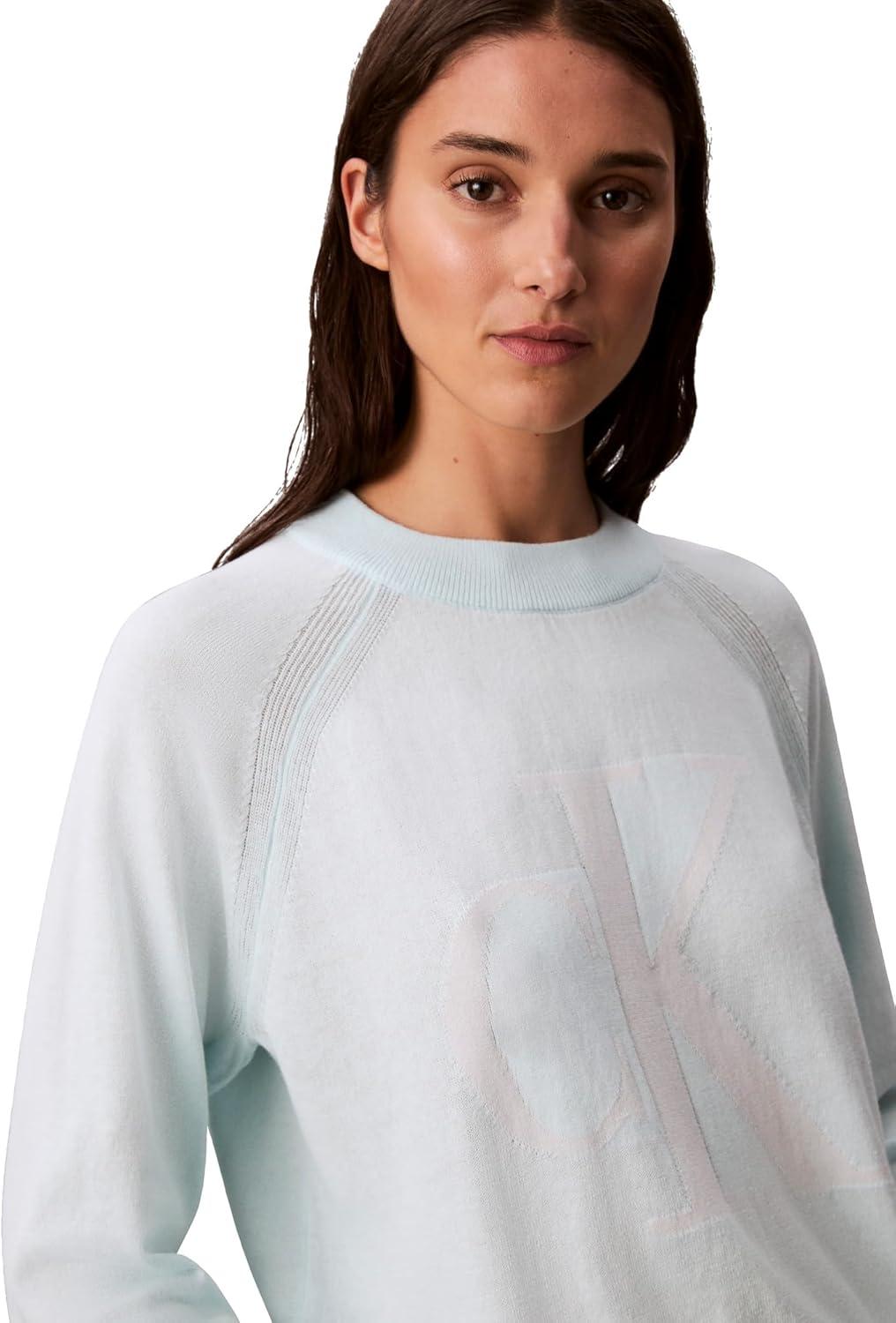 Calvin Klein Women’s Monogram Logo Mockneck Sweater(Serenity)