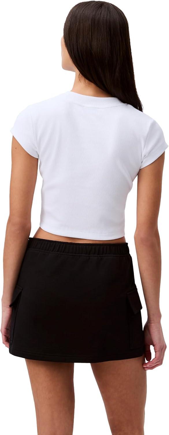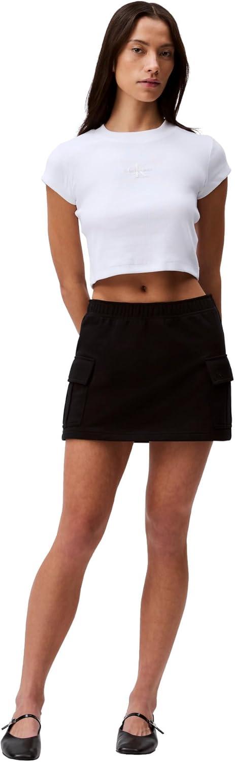 Calvin Klein Women's Monogram Logo Ribbed Baby Tee(Brilliant White)