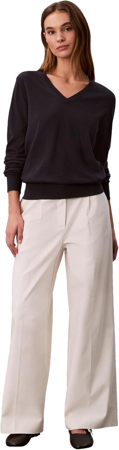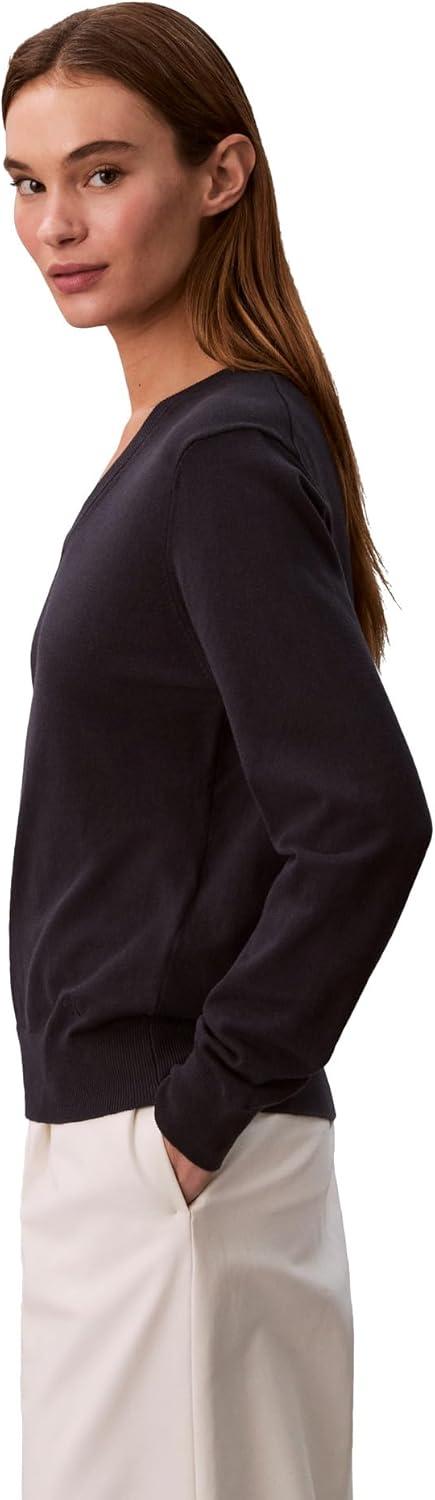 Calvin Klein Women's Monogram Logo V-Neck Sweater(Inkwell)
