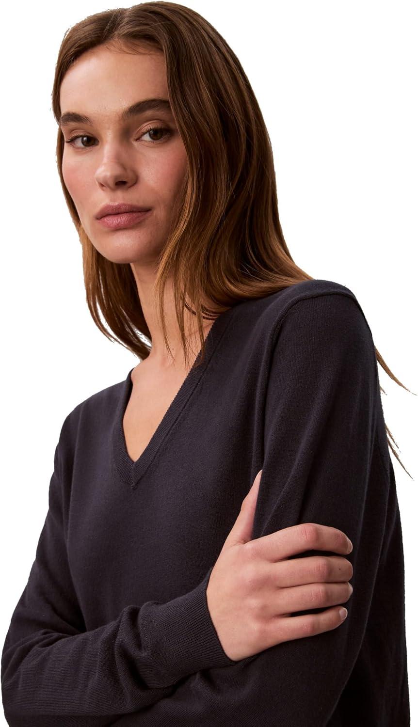 Calvin Klein Women’s Monogram Logo V-Neck Sweater(Inkwell)