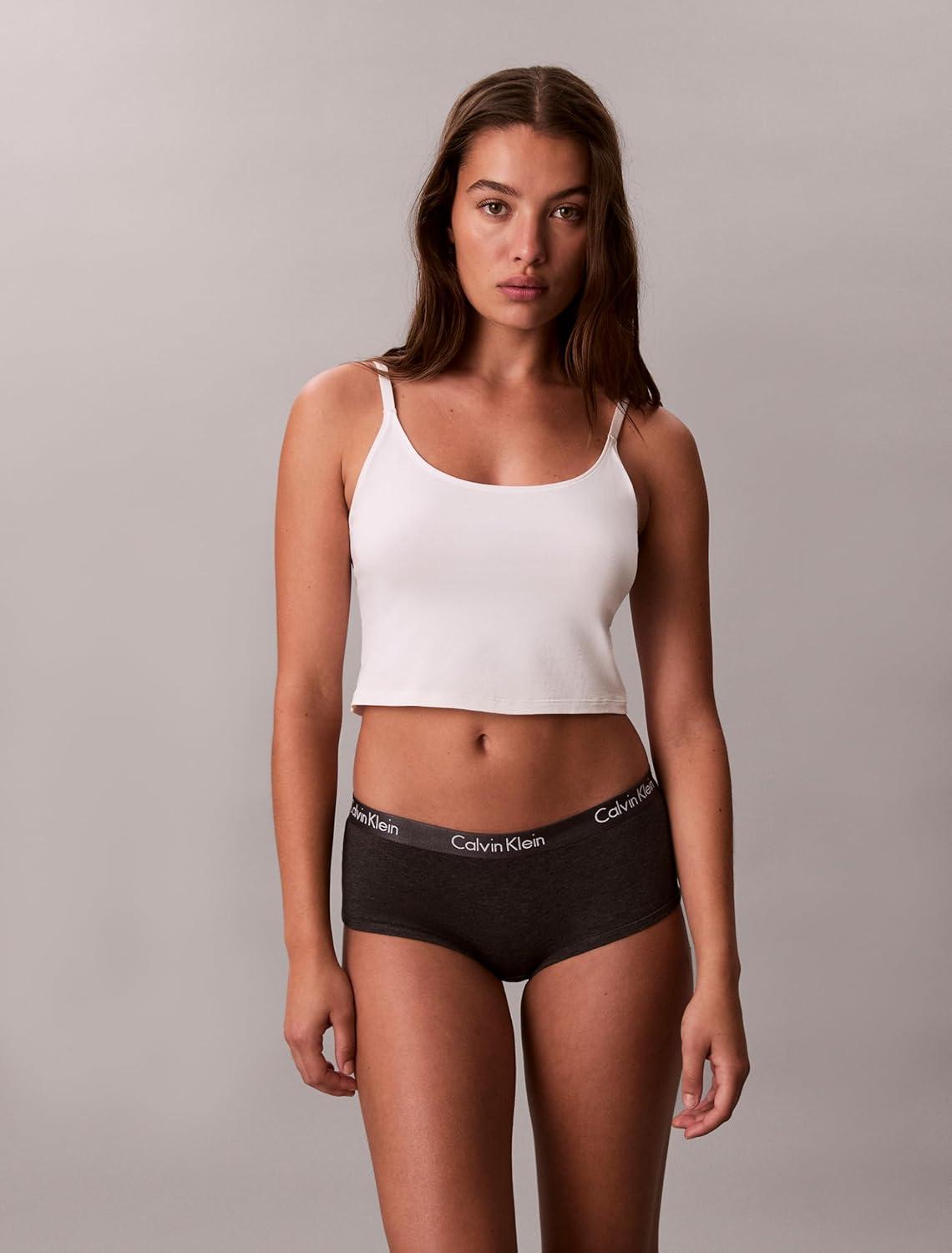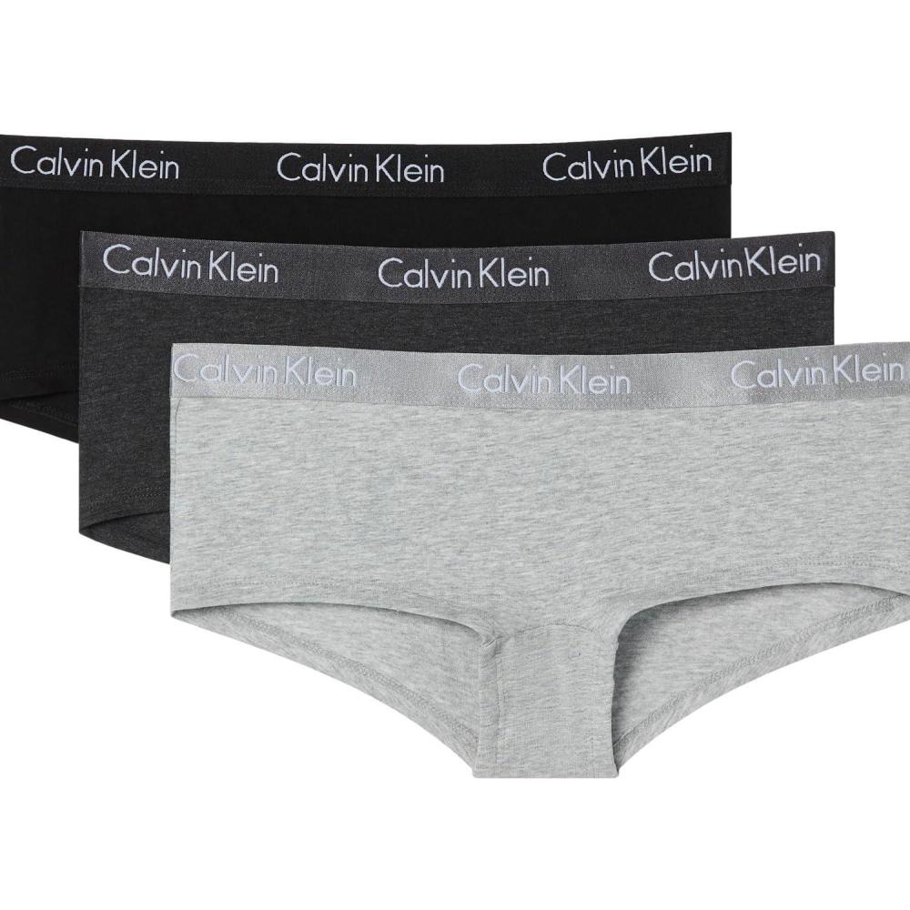 Calvin Klein Women’s Motive Cotton Boyshort Panties, 3 Pack(Black/Charcoal Heather/Grey Heather)