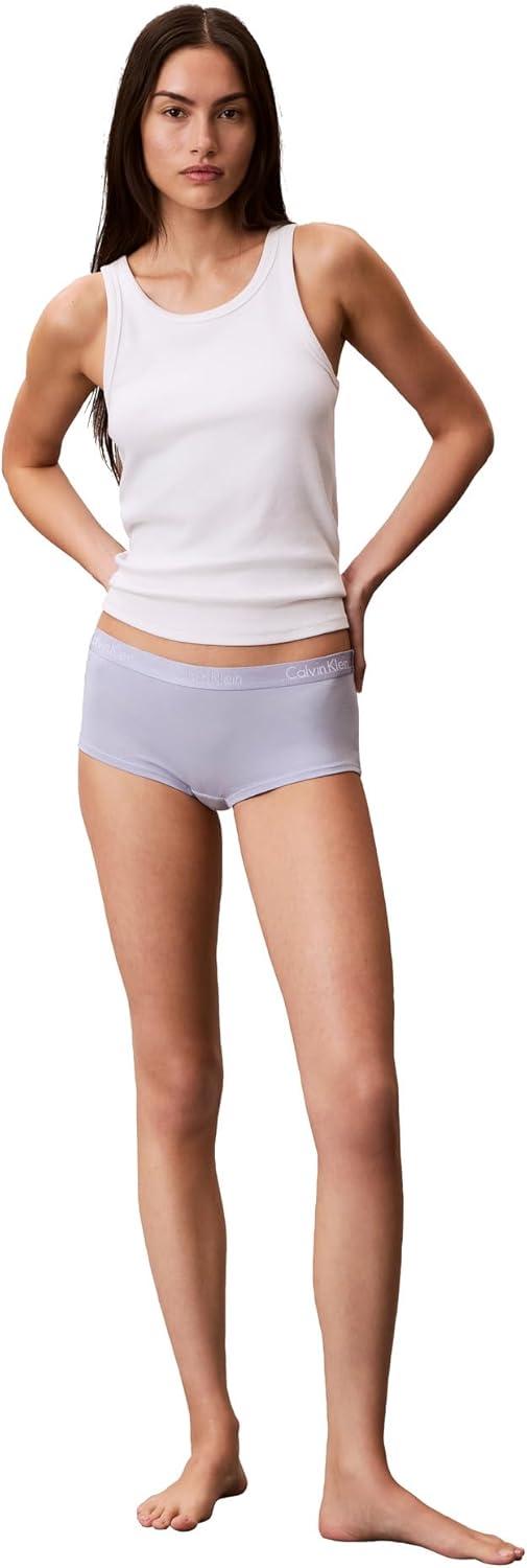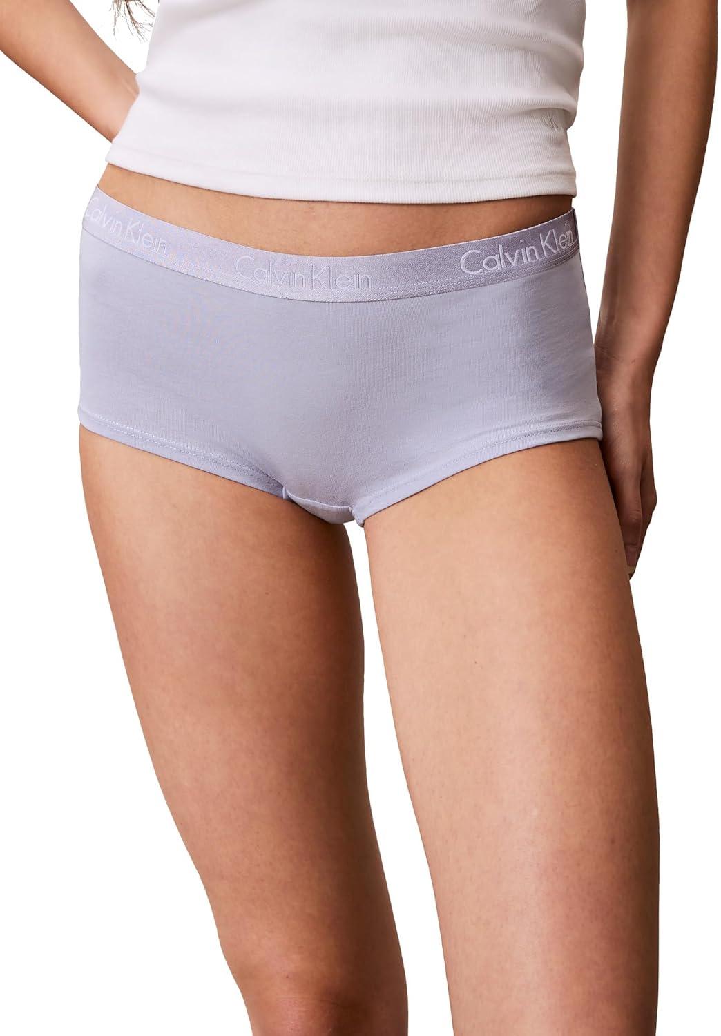 Calvin Klein Women’s Motive Cotton Boyshort Panties, 3 Pack(Shoreline/Casual Blue/White)