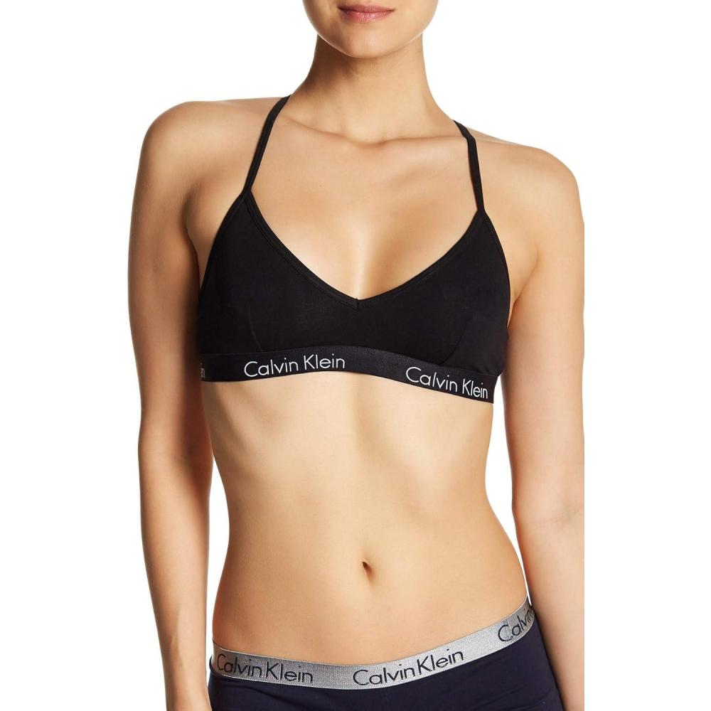 Calvin Klein Women's Motive Cotton Lightly Lined Bralette Bra(Black(qp1668-001)/White)