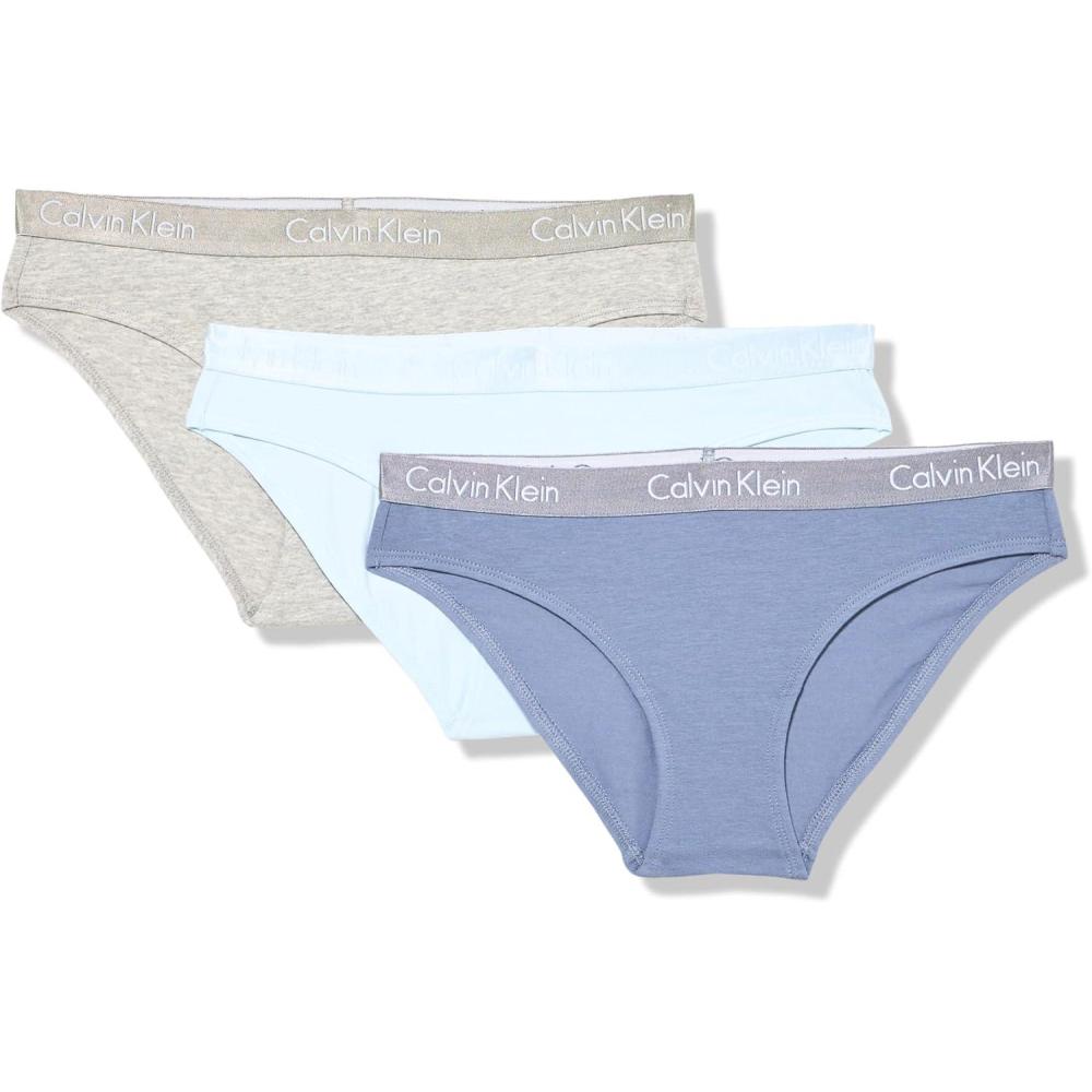 Calvin Klein womens Motive Cotton Multipack Bikini Panty(Scorched Denim/Grey Heather/Omphalodes)