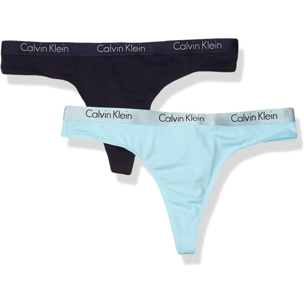 Calvin Klein Women’s Motive Cotton Multipack Thong Panty, 3 Pack(Navy Multi)