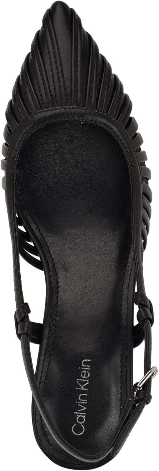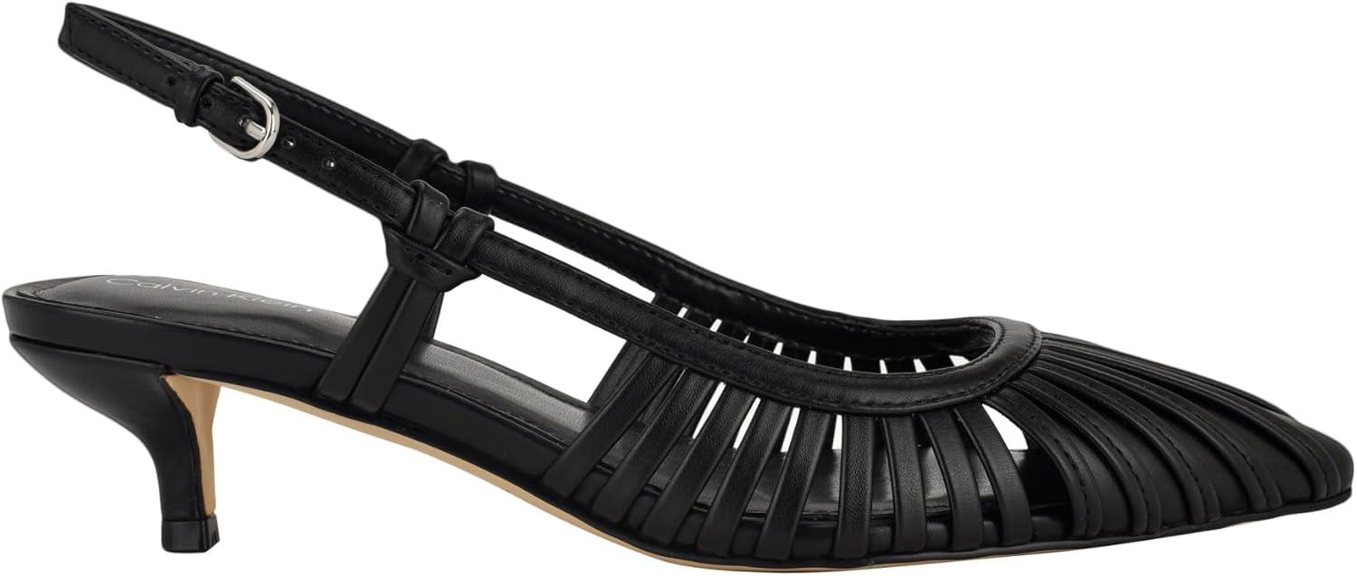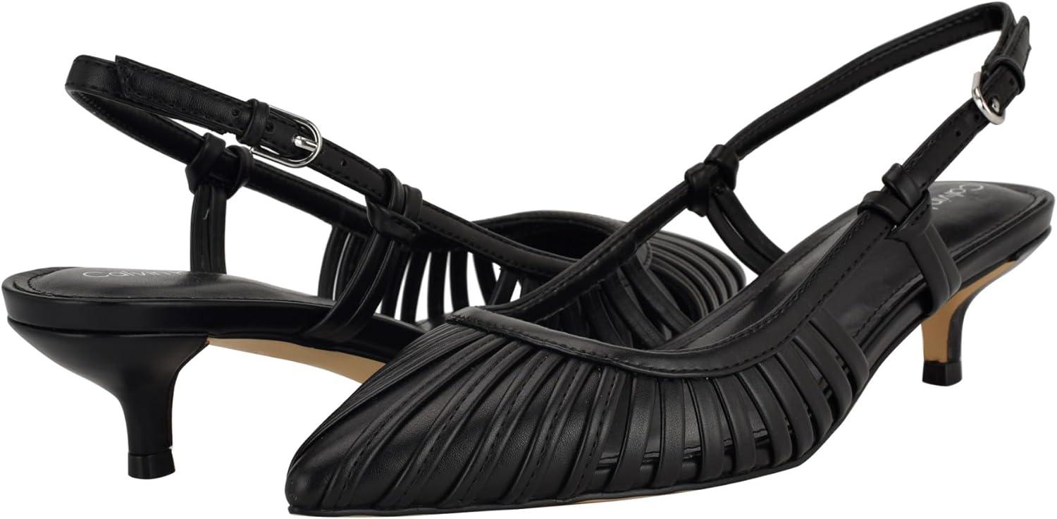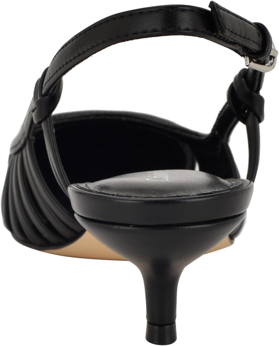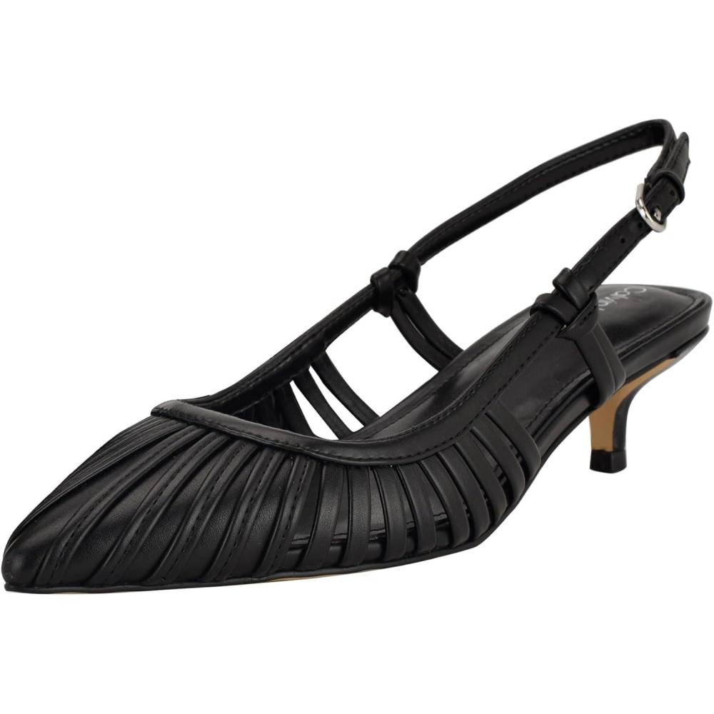 A classic night out silhouette, the Calvin Klein Movella is the perfect wardrobe staple. It features an adjustable slingback strap, pointy toe and a kitten heel. The Movella will pair with any outfit! Founded in New York in 1968, the brand elevates everyday essentials to globally iconic status.