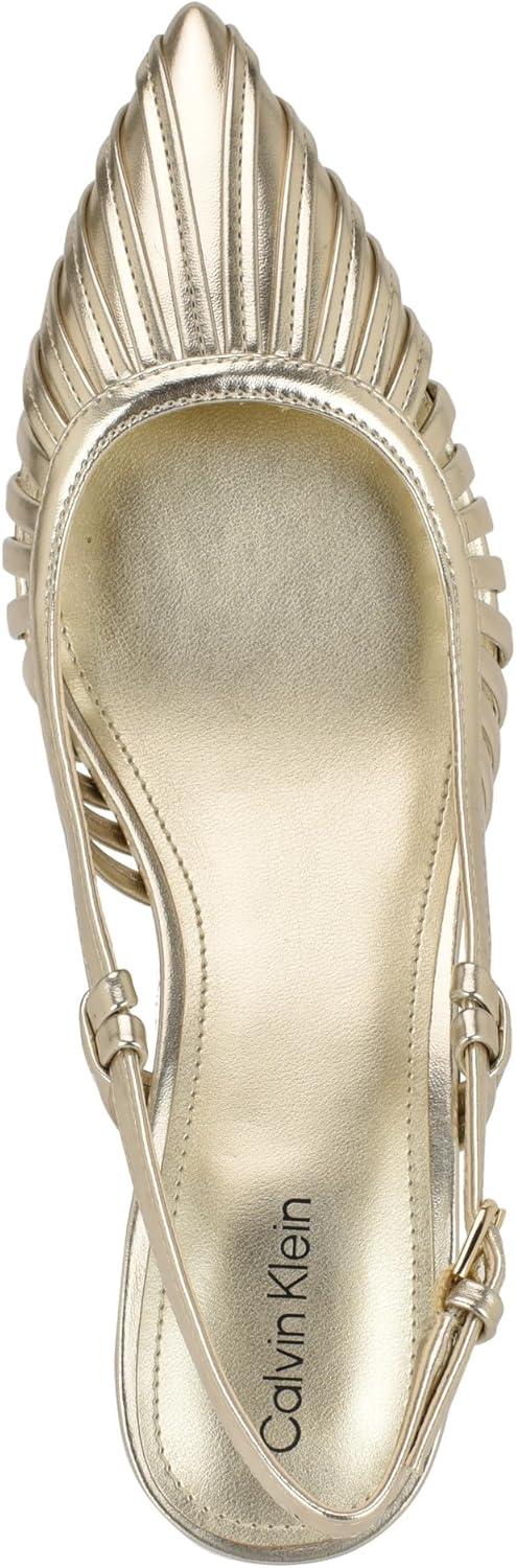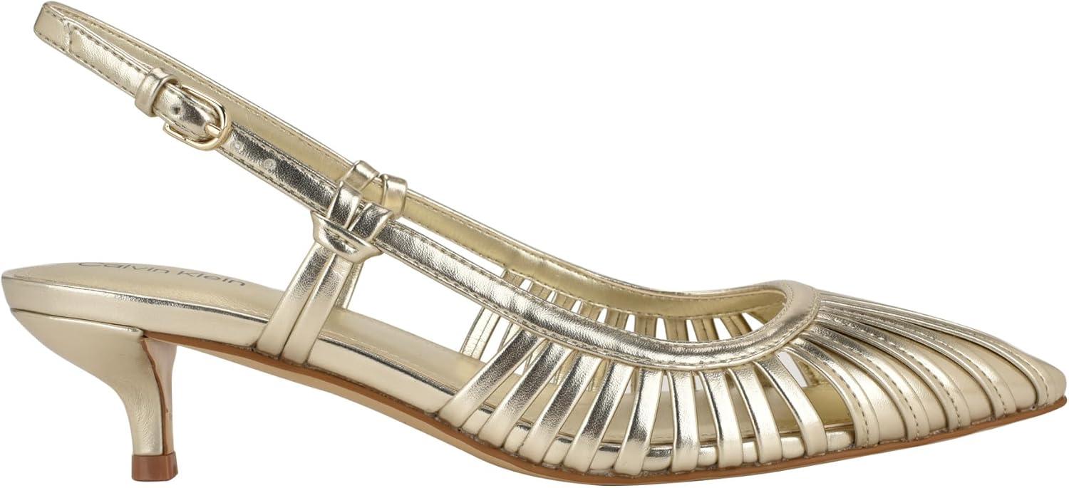 A classic night out silhouette, the Calvin Klein Movella is the perfect wardrobe staple. It features an adjustable slingback strap, pointy toe and a kitten heel. The Movella will pair with any outfit! Founded in New York in 1968, the brand elevates everyday essentials to globally iconic status.