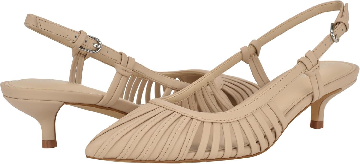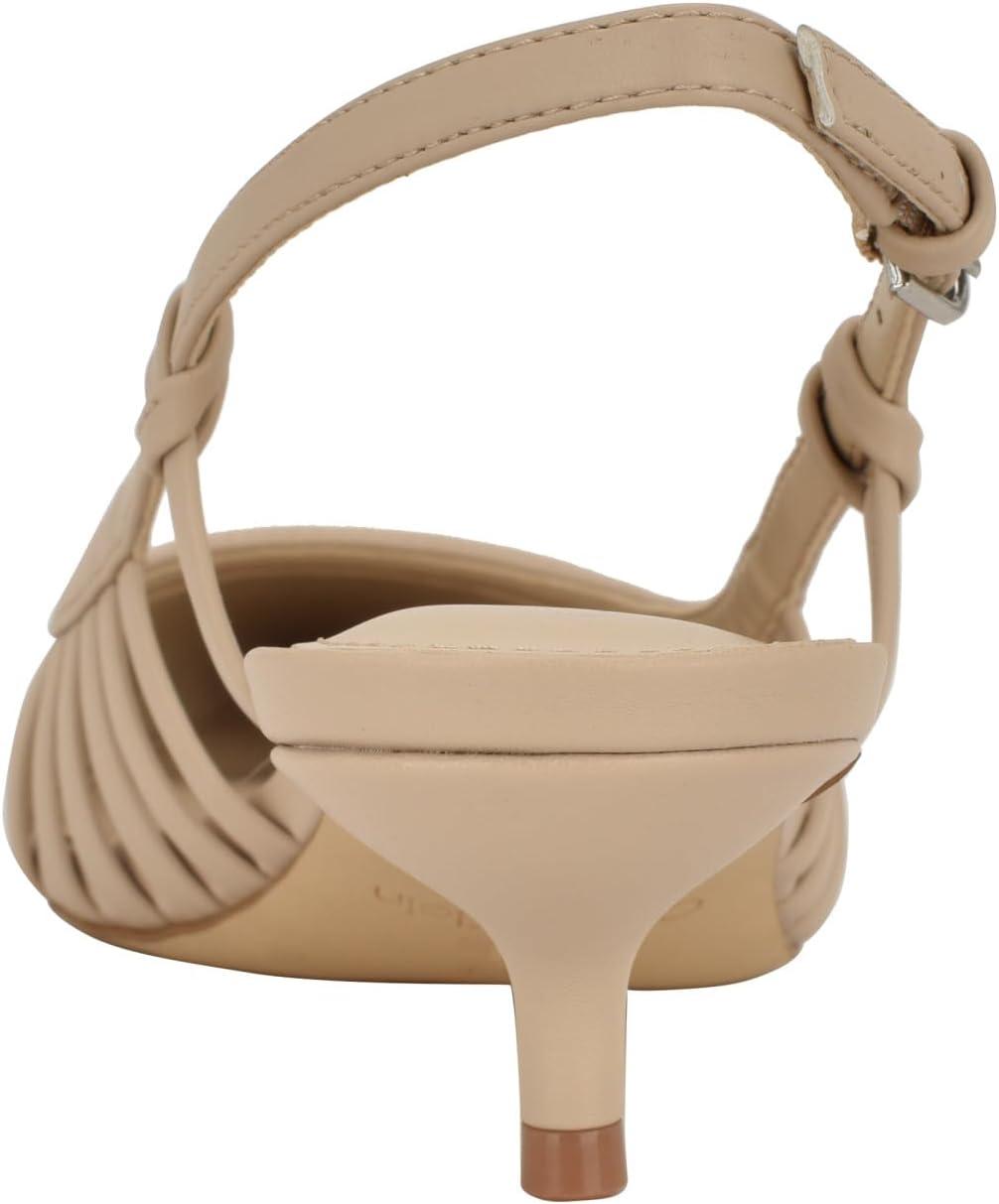 A classic night out silhouette, the Calvin Klein Movella is the perfect wardrobe staple. It features an adjustable slingback strap, pointy toe and a kitten heel. The Movella will pair with any outfit! Founded in New York in 1968, the brand elevates everyday essentials to globally iconic status.