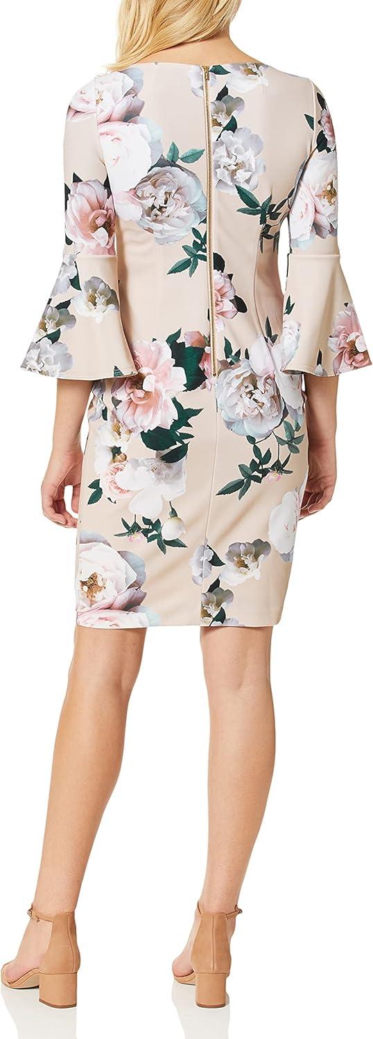 This Calvin Klein Women's Dresses Sheath Dress is a Scuba Crepe Workwear Sheath Bell Sleeve Basic