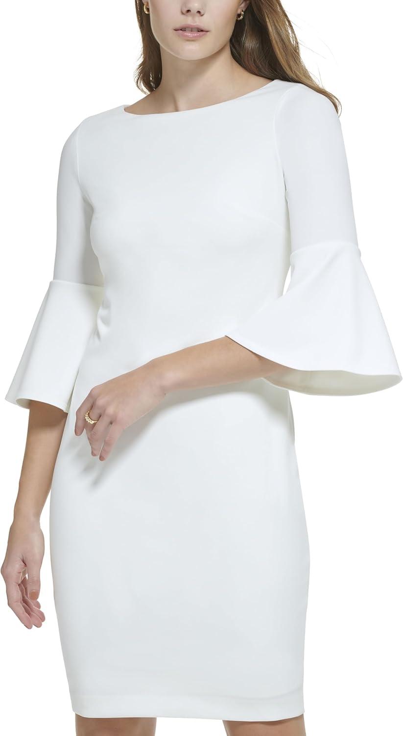 This Calvin Klein Women's Dresses Sheath Dress is a Scuba Crepe Workwear Sheath Bell Sleeve Basic