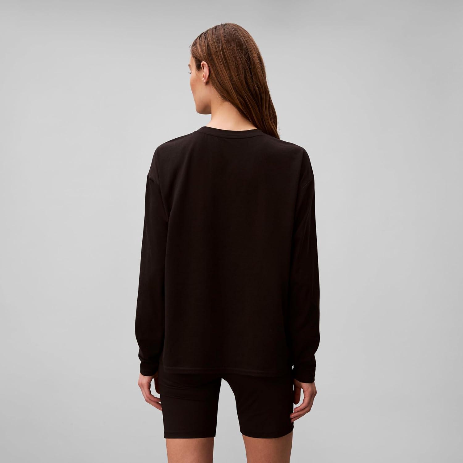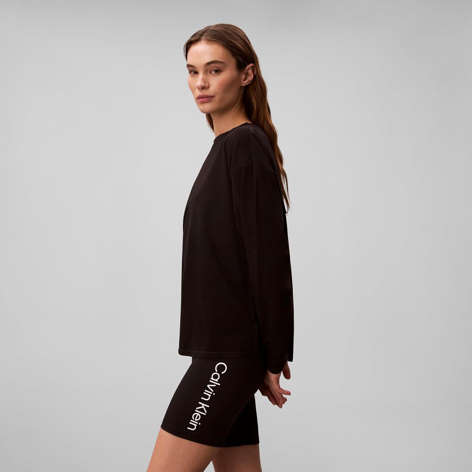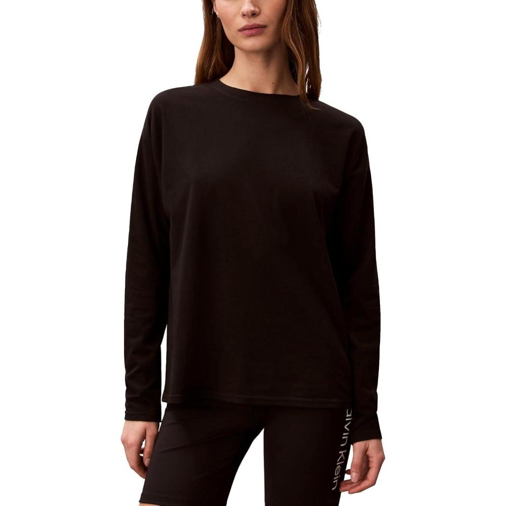 Calvin Klein Women’s Performance Classic Fit Crewneck Long Sleeve Tee(Black)