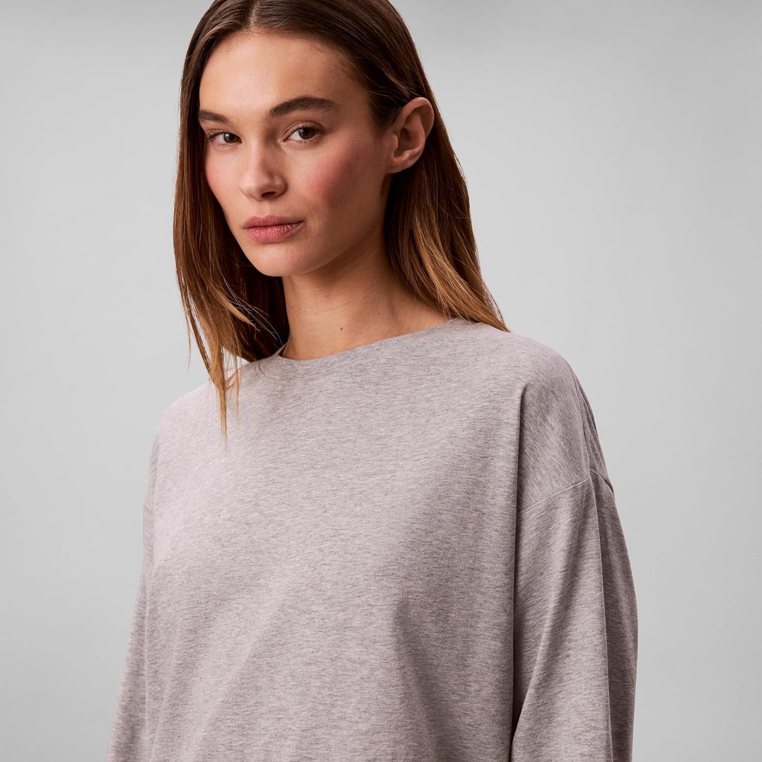 Calvin Klein Women’s Performance Classic Fit Crewneck Long Sleeve Tee(Grey Heather)