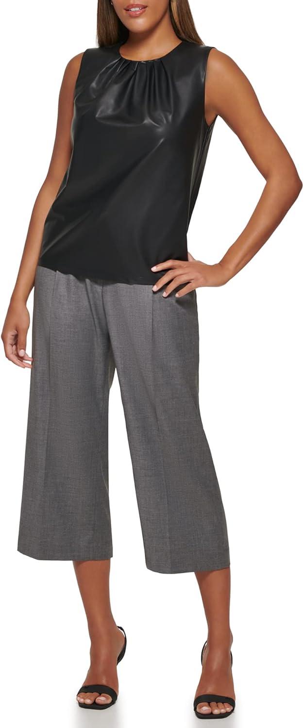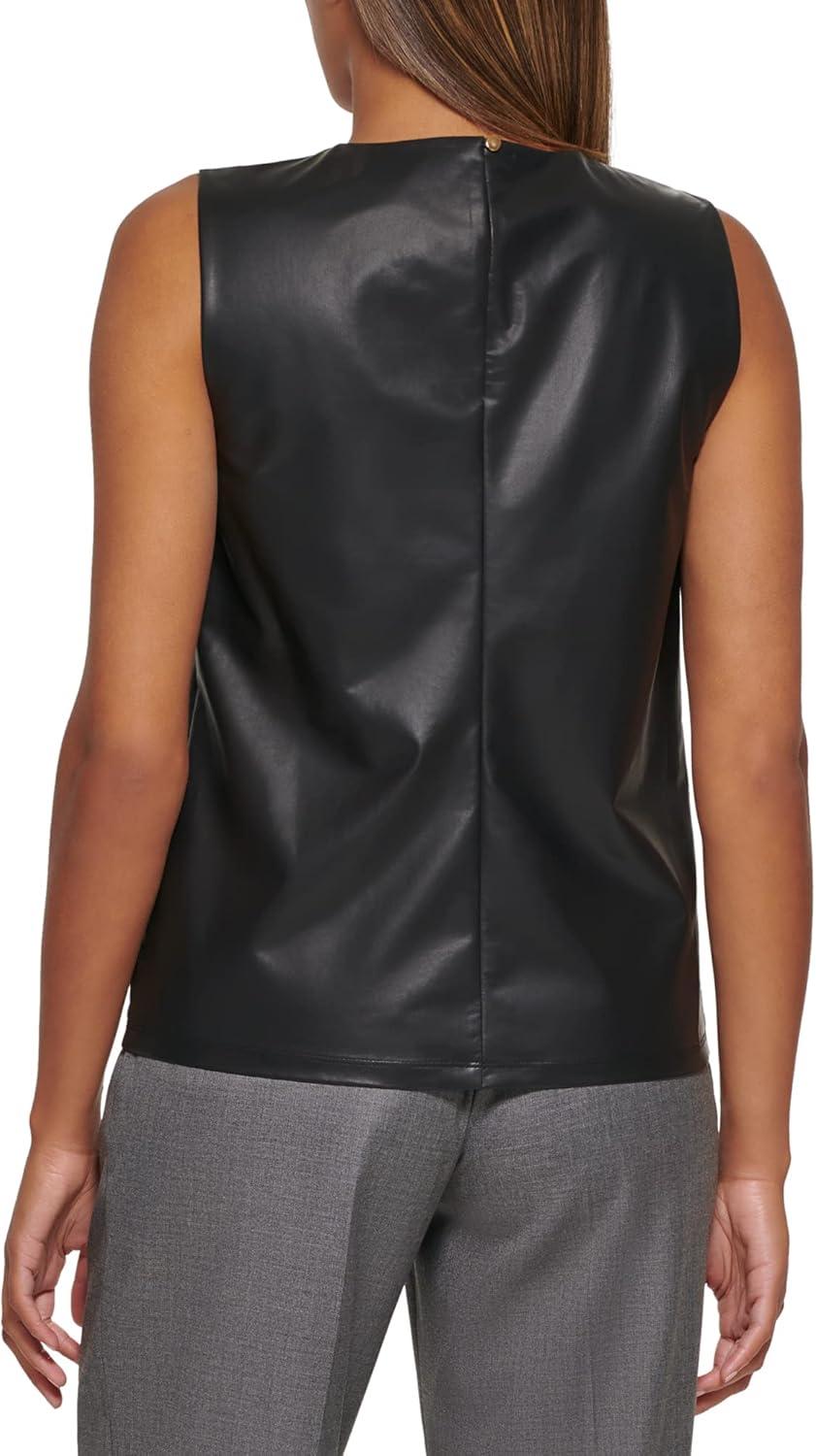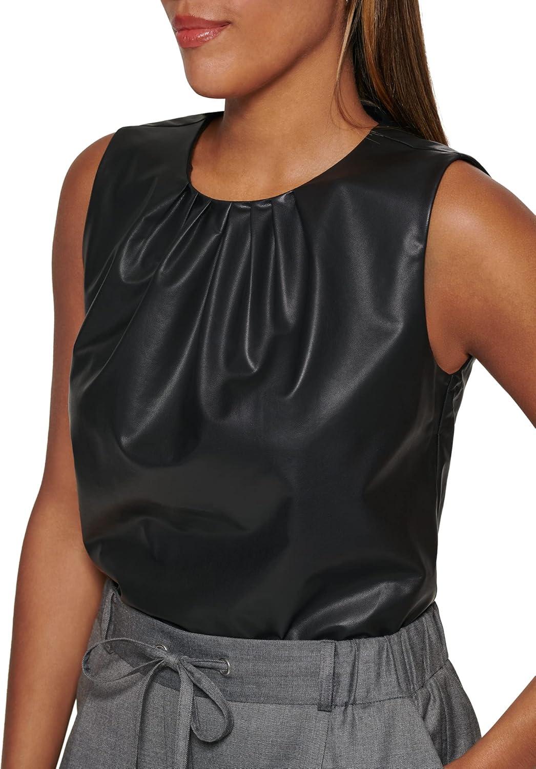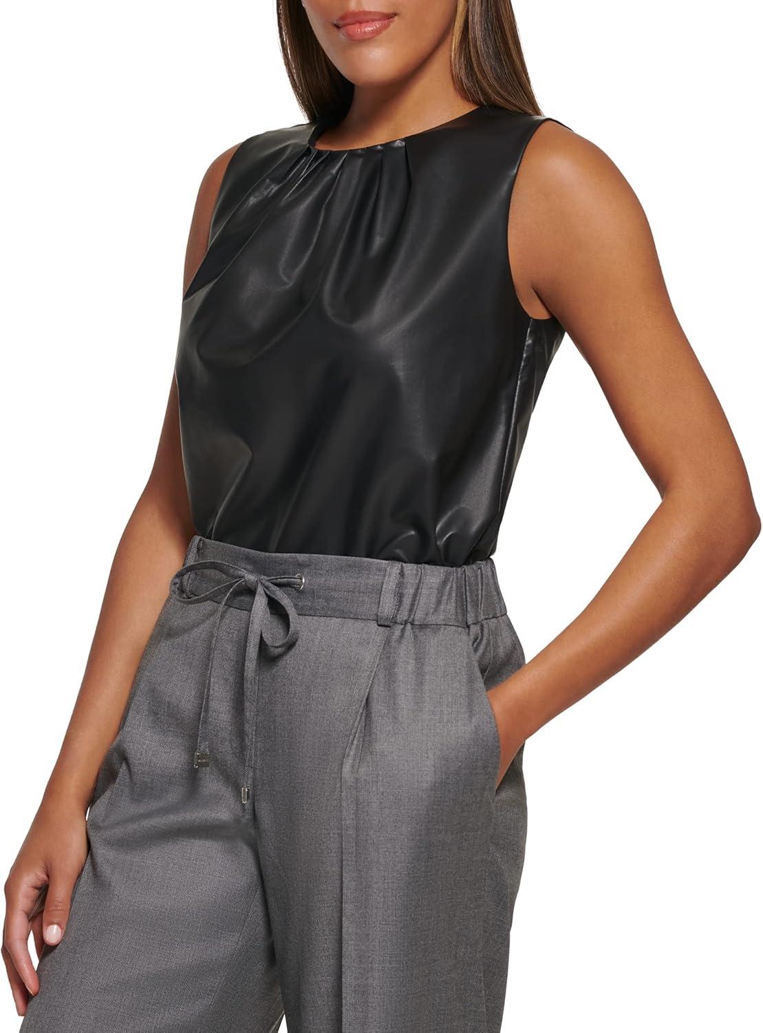 Calvin Klein Women’s Pleat Neck Sleeveless Blouse(Black)