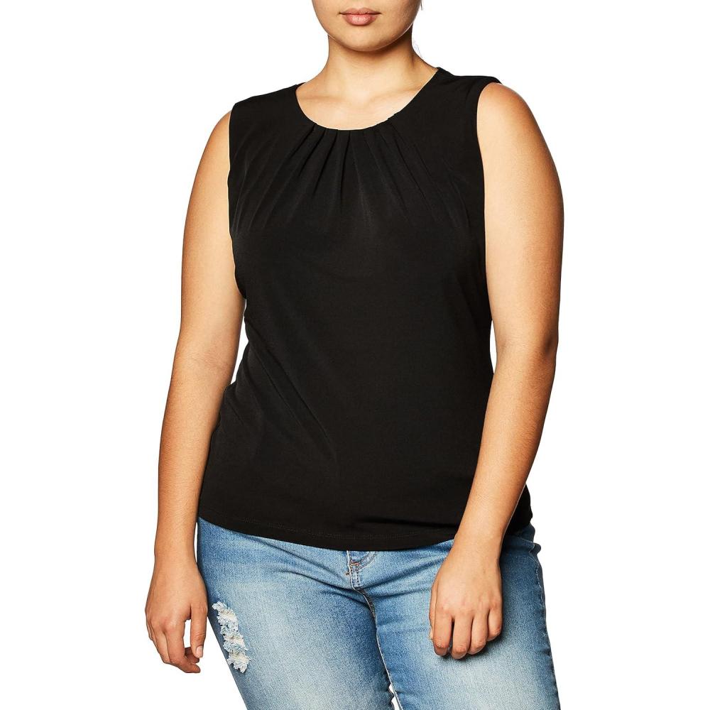 Calvin Klein Women’s Pleat Neck Sleeveless Blouse(Deep Black)