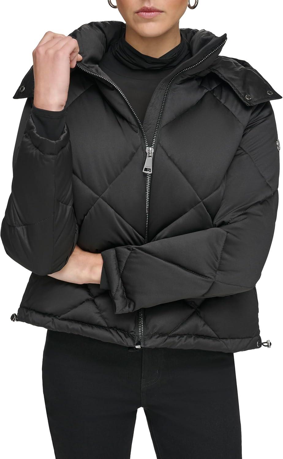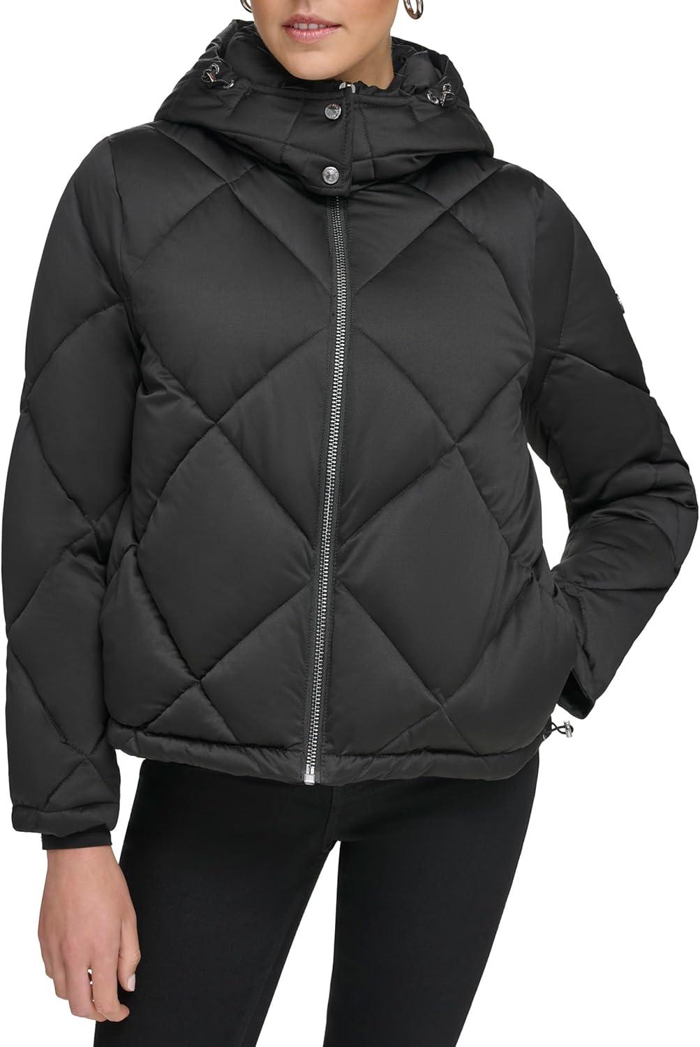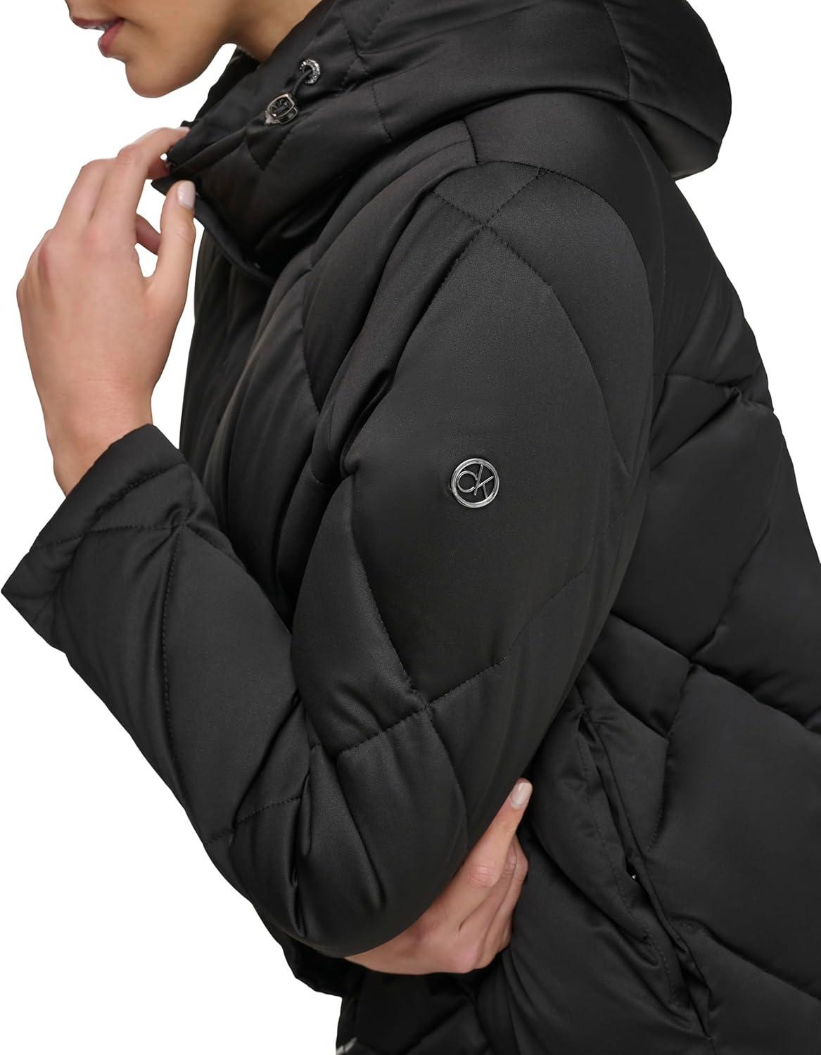 This Calvin Klein Women's Outerwear is a Quilted Hooded Puffer Coat