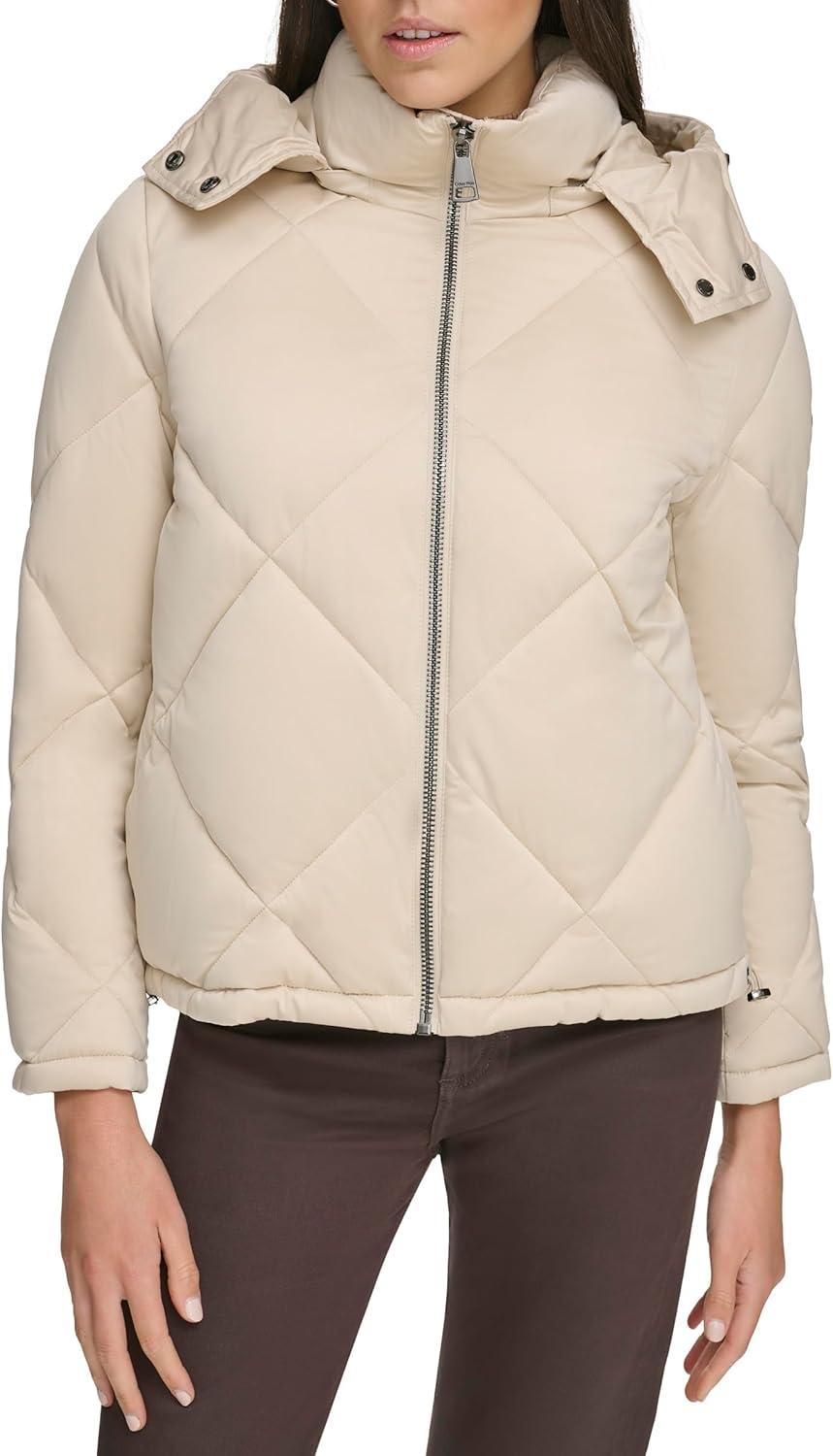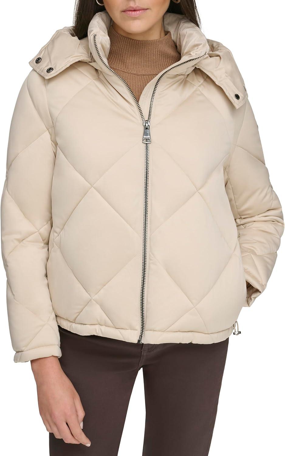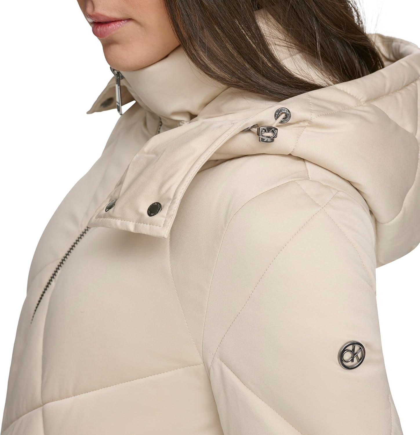 This Calvin Klein Women's Outerwear is a Quilted Hooded Puffer Coat