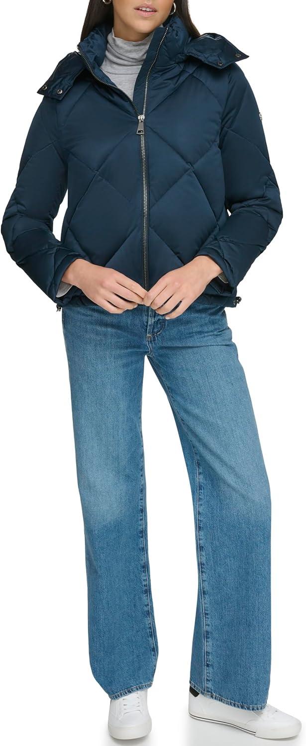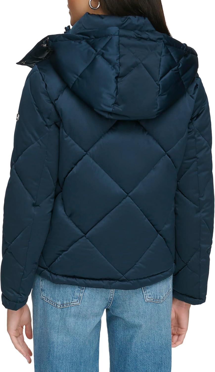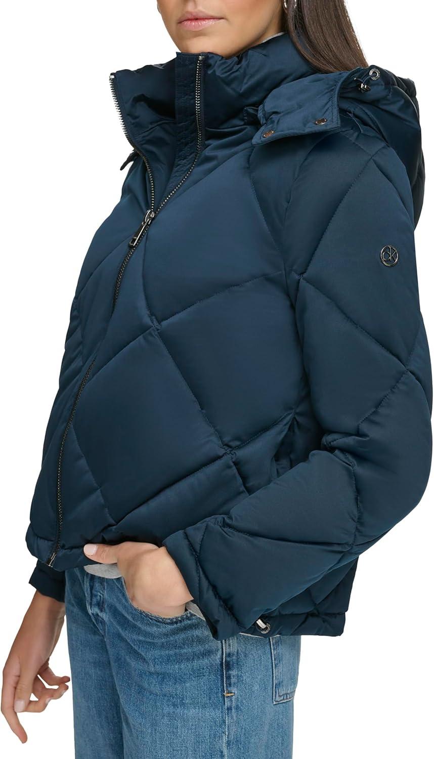 Calvin Klein Women’s Quilted Puffer Jacket(Quilted Hood Dark Navy)