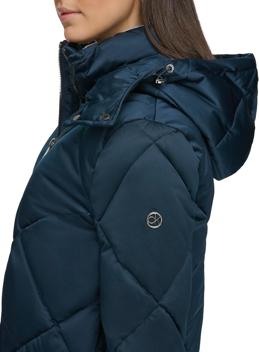 Calvin Klein Women's Quilted Puffer Jacket(Quilted Hood Dark Navy)