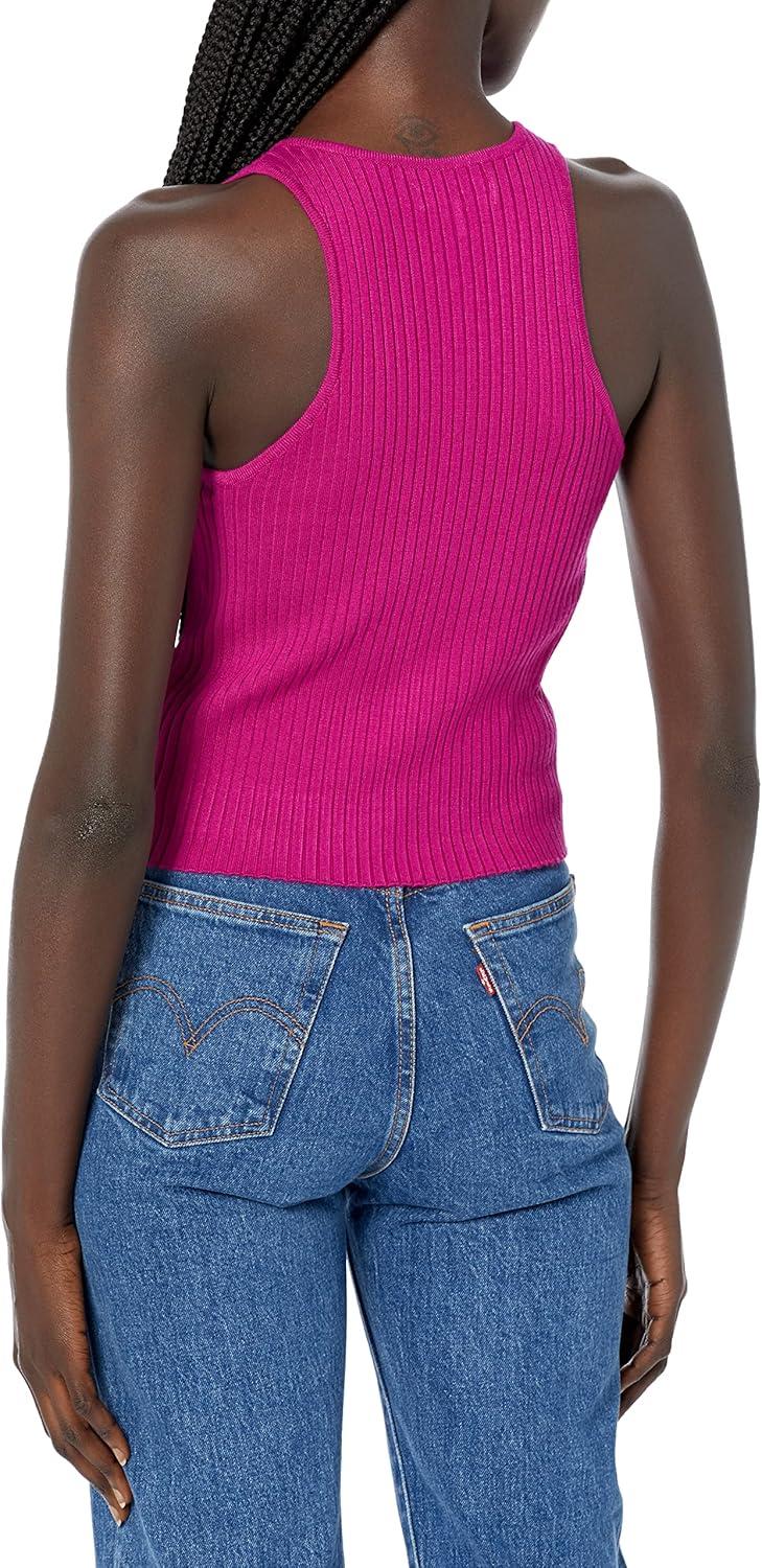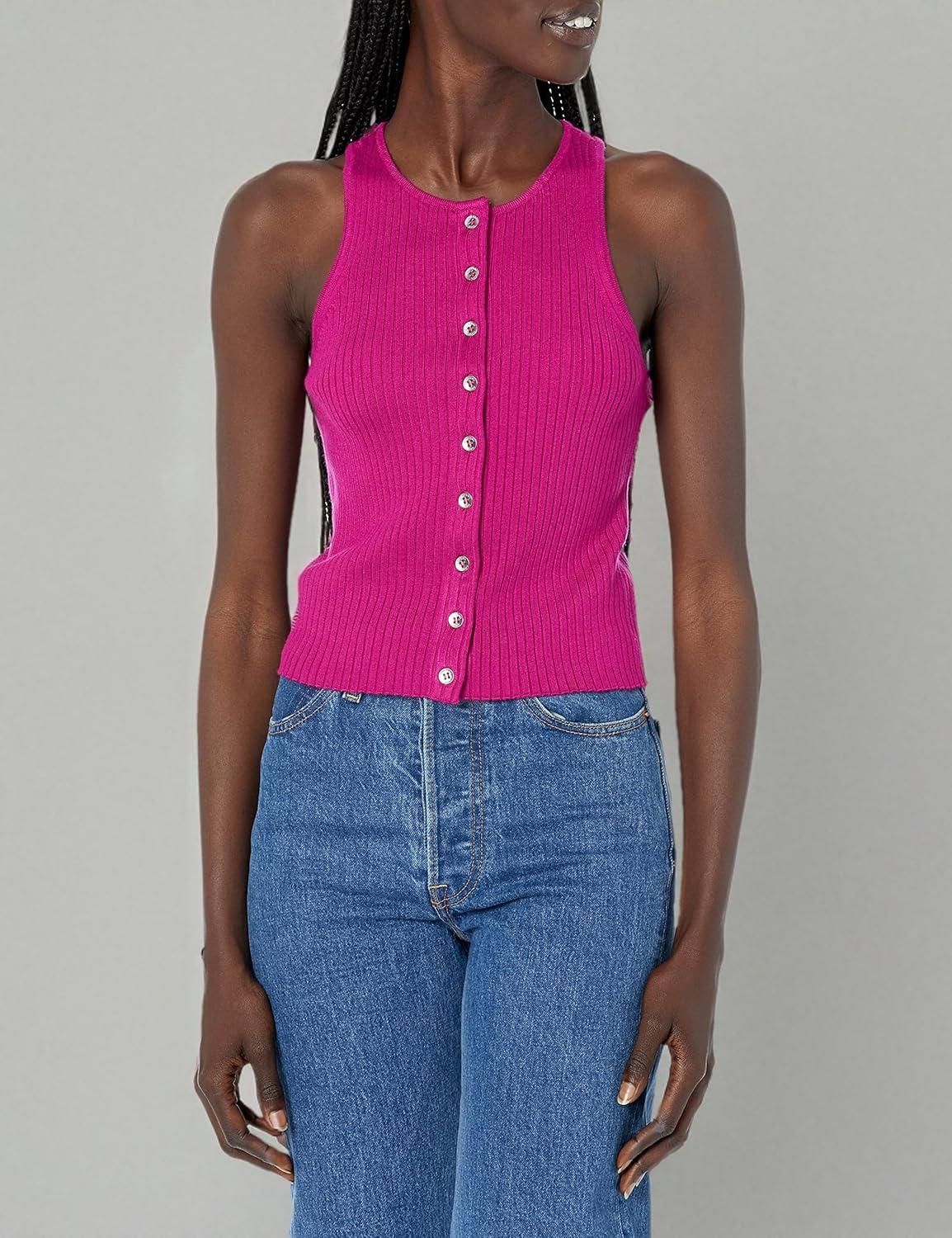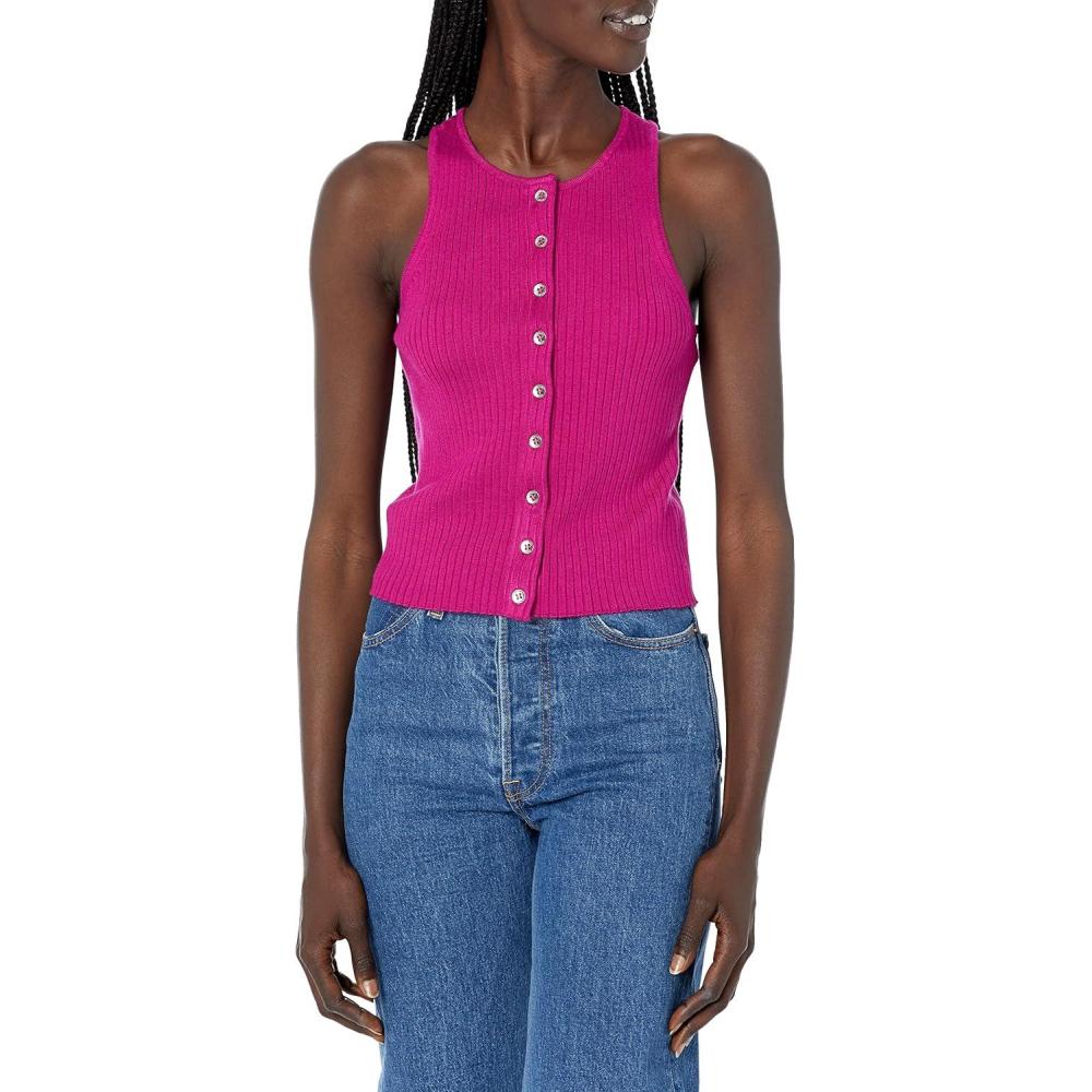 Calvin Klein Women’s Ribbed Scoop Neck Button Tank Top(Melrose)