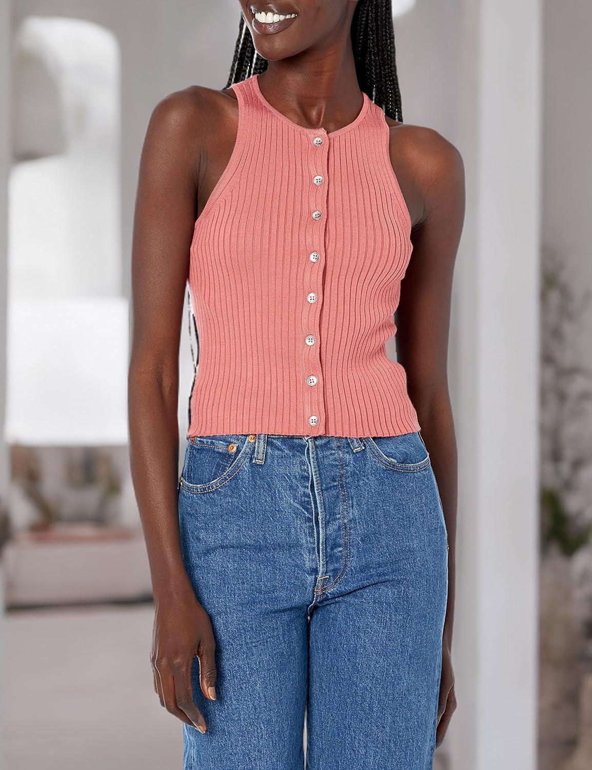 Calvin Klein Women’s Ribbed Scoop Neck Button Tank Top(Savannah)