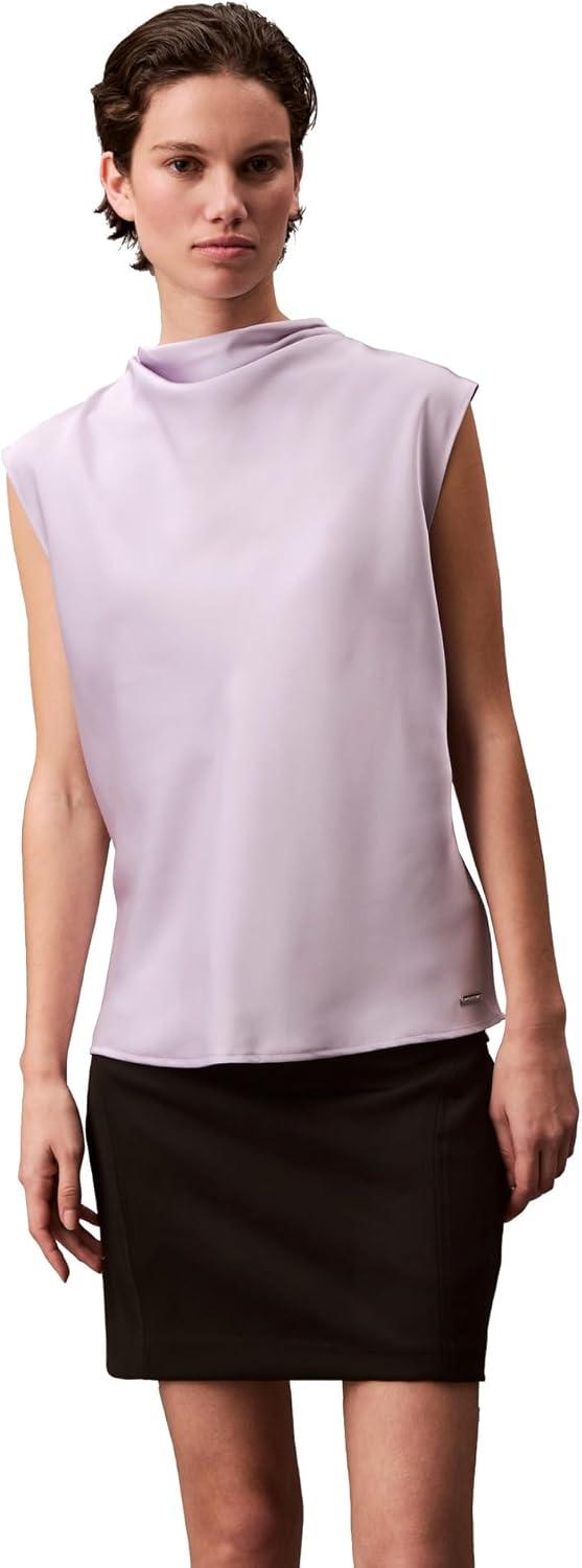 Calvin Klein Womens Satin Cowl Neck Blouse(Orchid Petal)