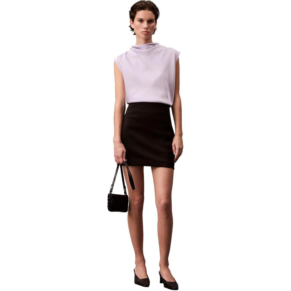 Calvin Klein Womens Satin Cowl Neck Blouse(Sea Salt)