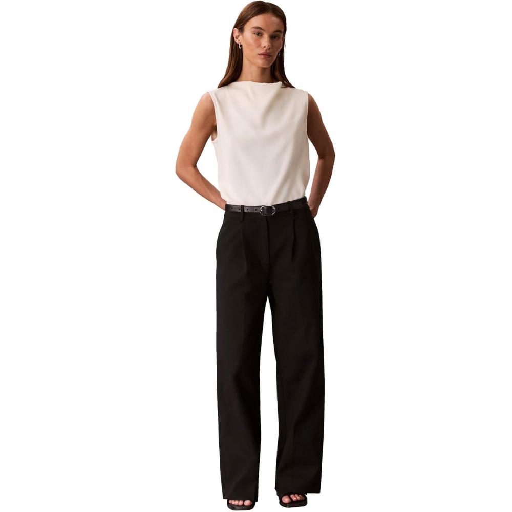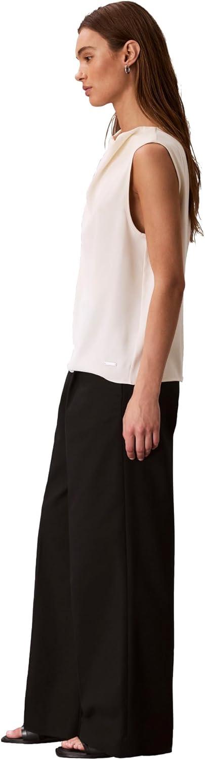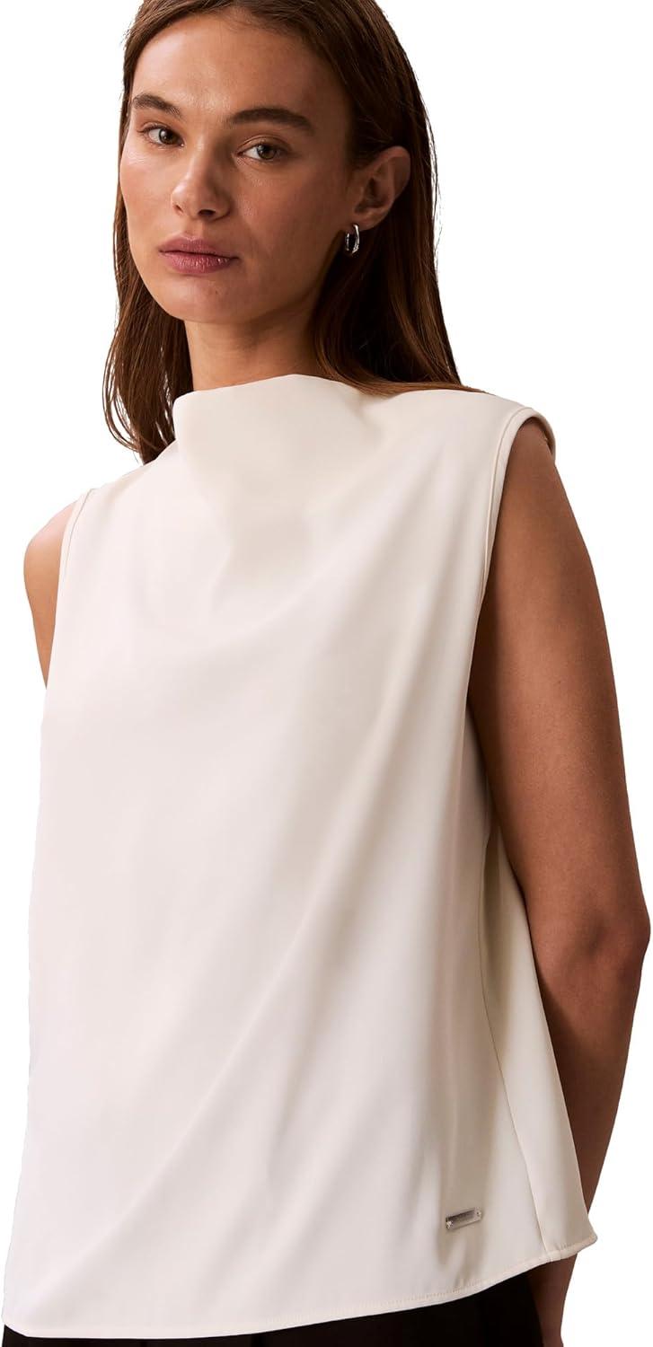 Crafted from satin with minimalist styling, this Calvin Klein tank top is cut in a classic fit. Styled with a high neckline and a logo plaque near the hem.