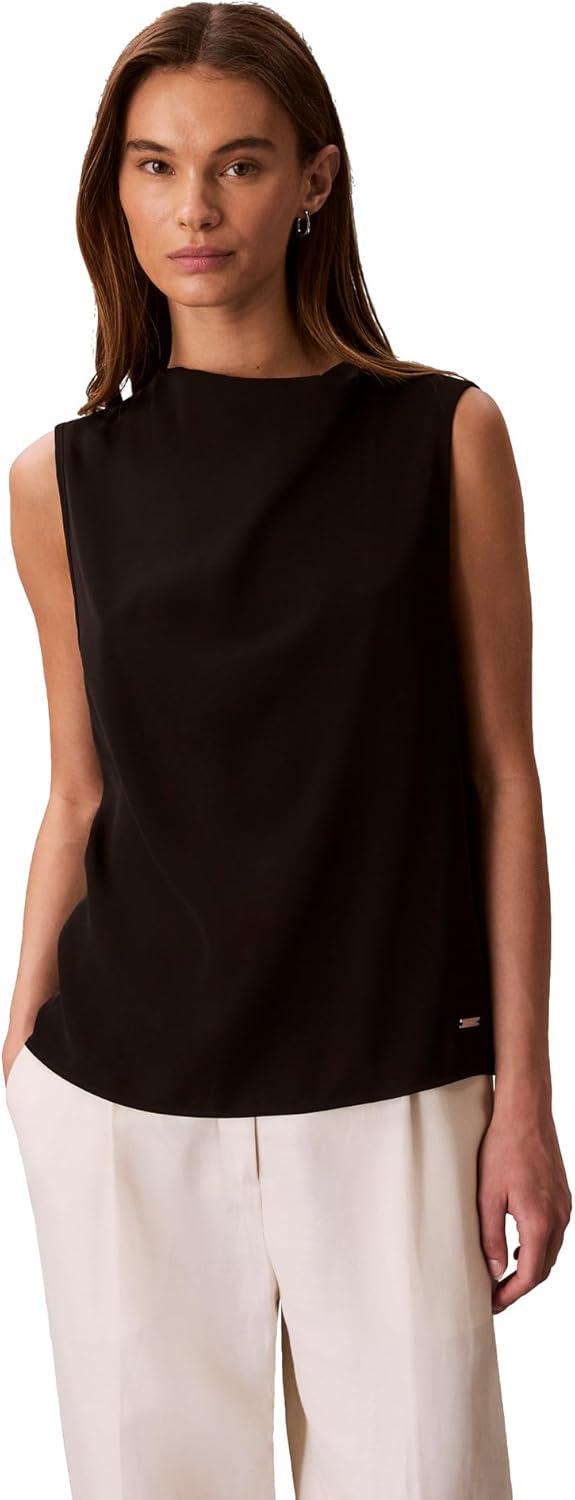 Calvin Klein Women's Satin High Neck Tank Top(Black)