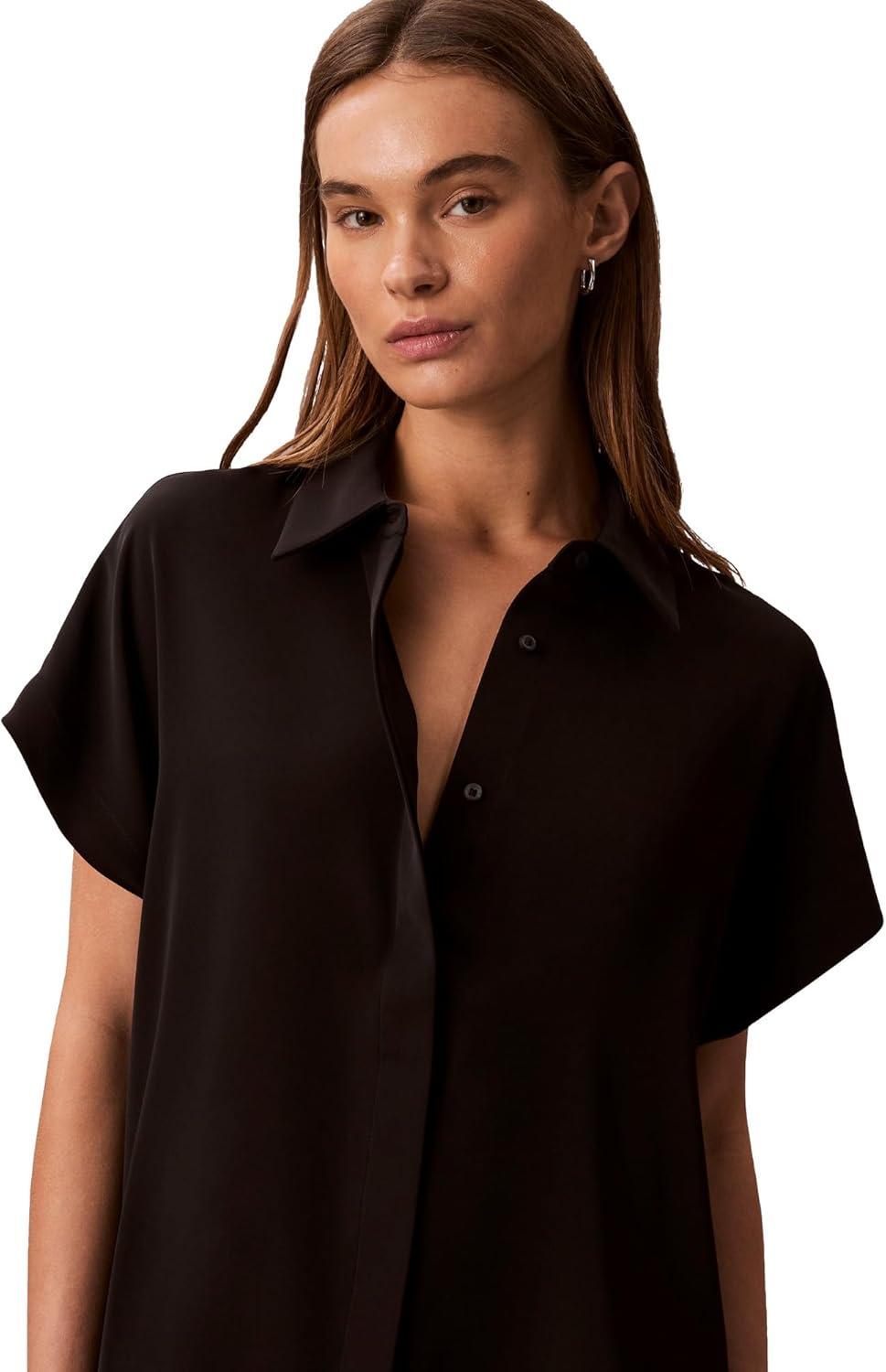 Calvin Klein Women’s Satin Short Sleeve Top(Black)