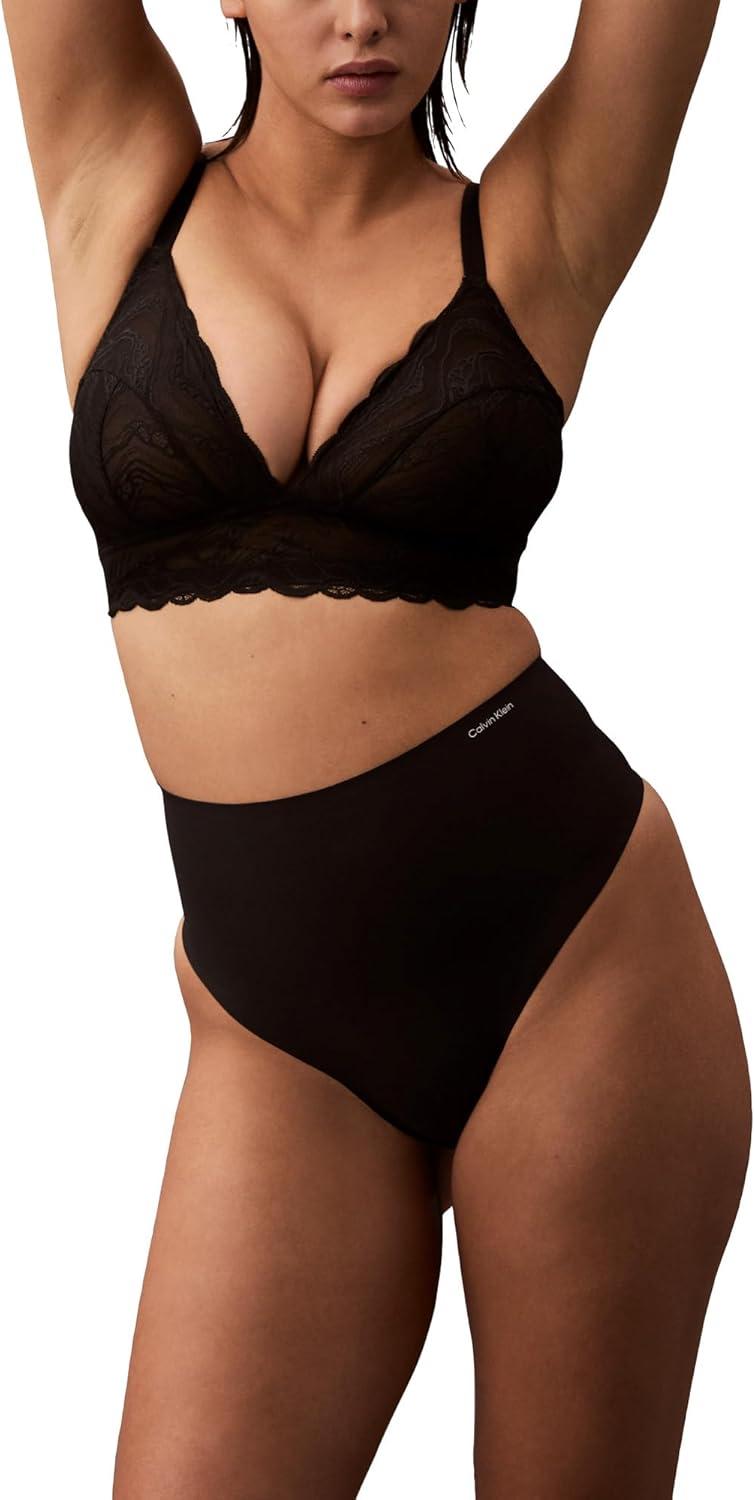 Calvin Klein Women’s Shapewear Second Skin Smoothing High-Waist Thong Panty(Black)