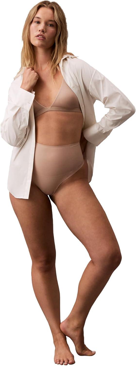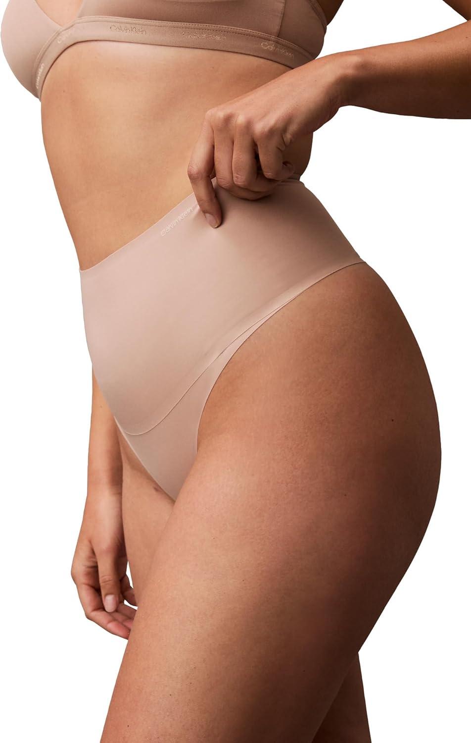Smoothing stretch comfort. Light core compression featuring double layer bonded fabric for shaping. Crafted from ultra-smooth microfiber, this Calvin Klein shapewear thong is designed with clean cut edges for ultimate comfort.