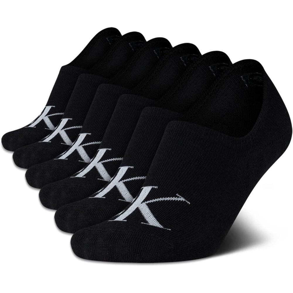 Calvin Klein Women's Socks - Comfort Cuff Sneaker Liner (6 Pack)(Black Assorted)