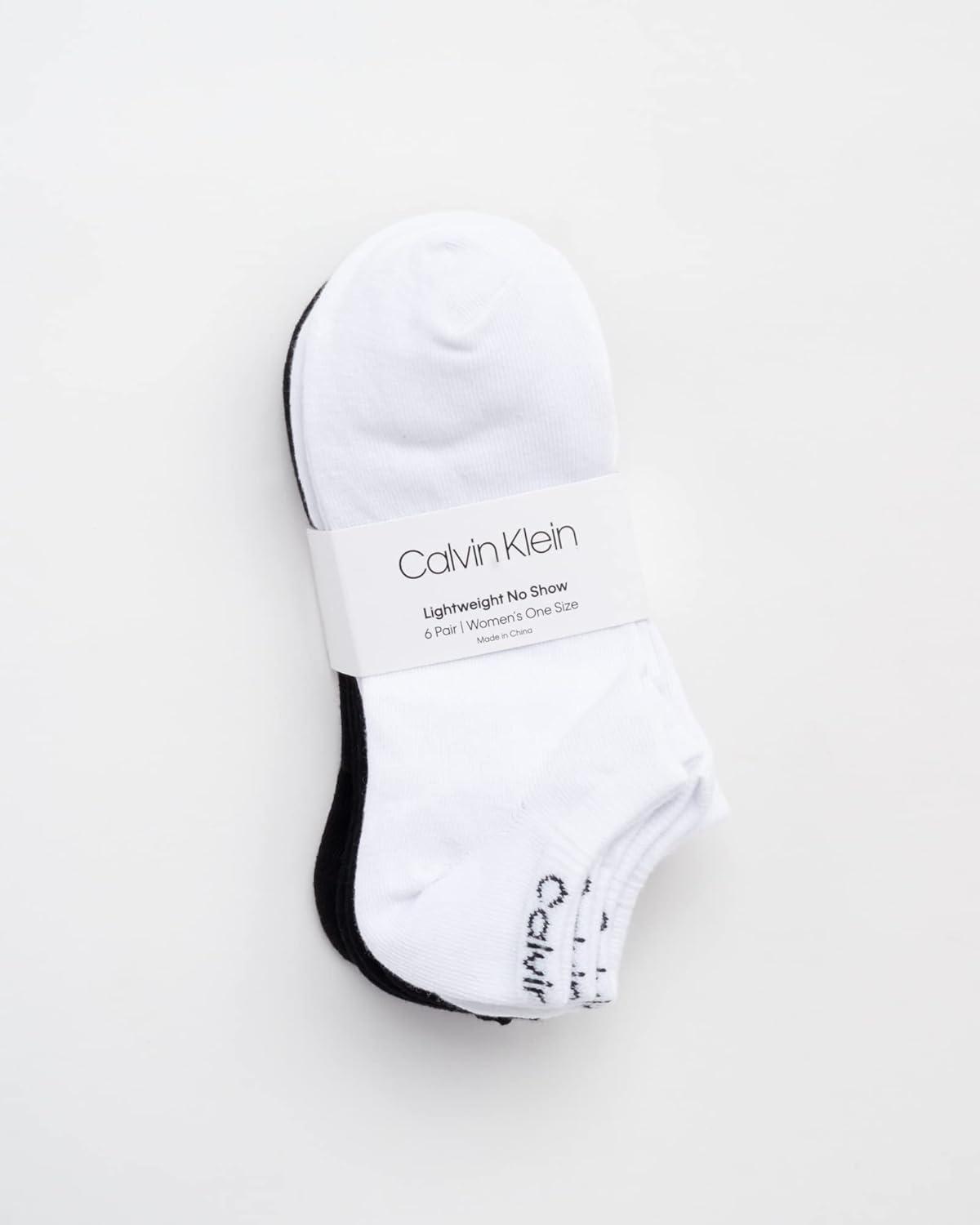 Calvin Klein Women’s Socks – Lightweight No Show Socks (6 Pack)(White/Black)