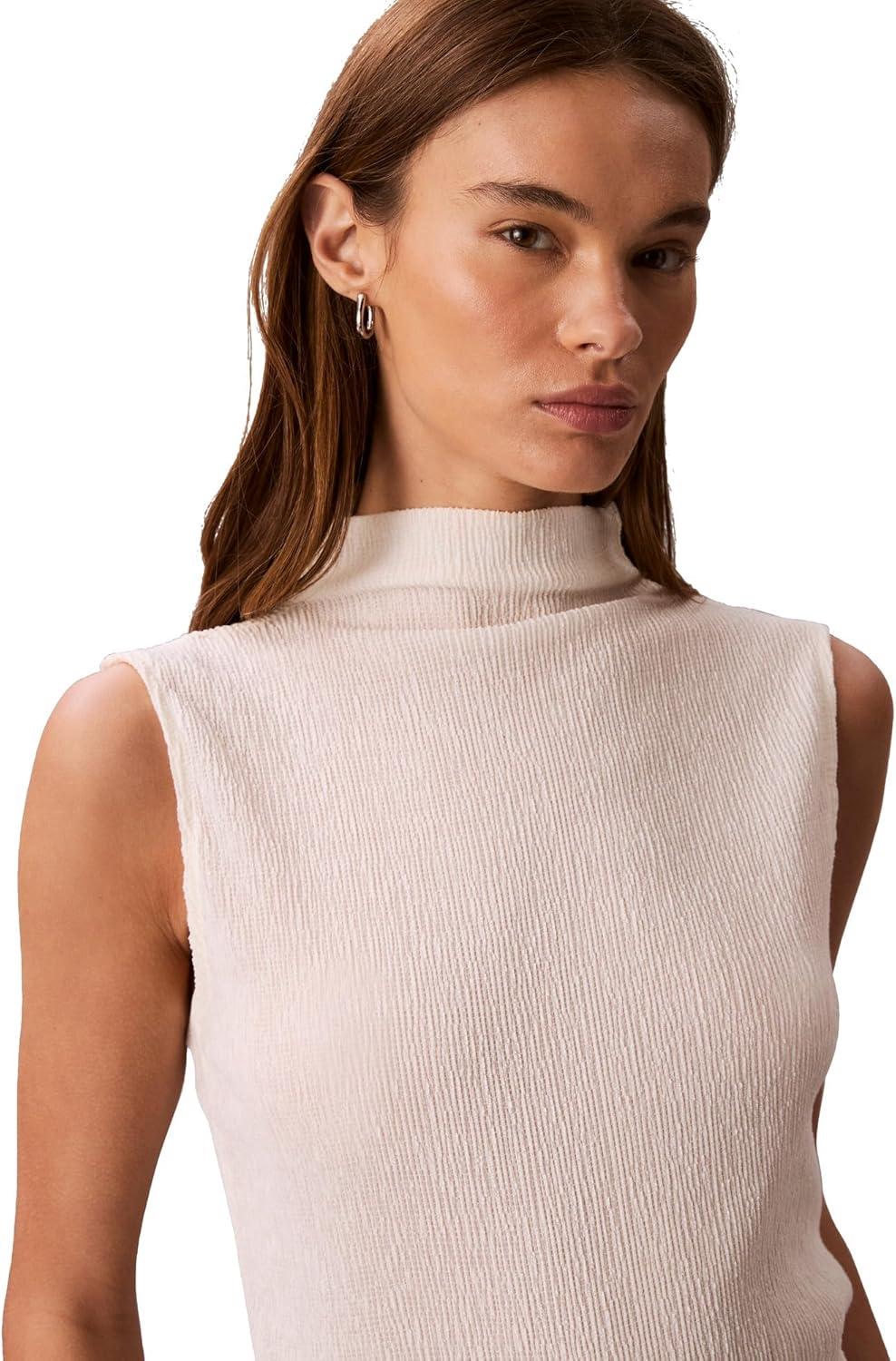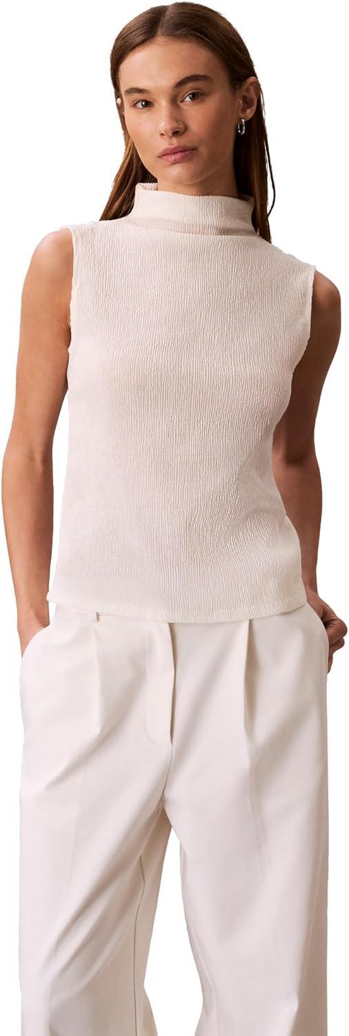 Sculptural and sleek, this Calvin Klein mock neck top is cut in a slim silhouette. Designed with a textured knit blended with stretch for a flexible fit and feel.