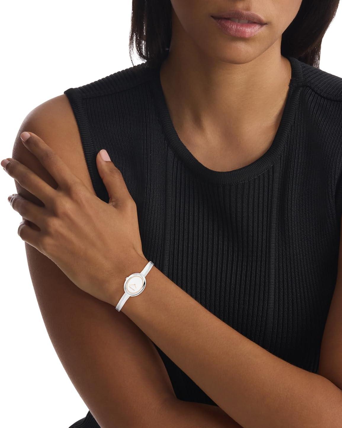 Calvin Klein Women's Twisted Bezel - 24mm 2H Quartz Watch - Adjustable Stainless Steel Bangle - Water Resistance 30 Meters – Premium Fashion for All Occasions - Gift for Her(Silver)