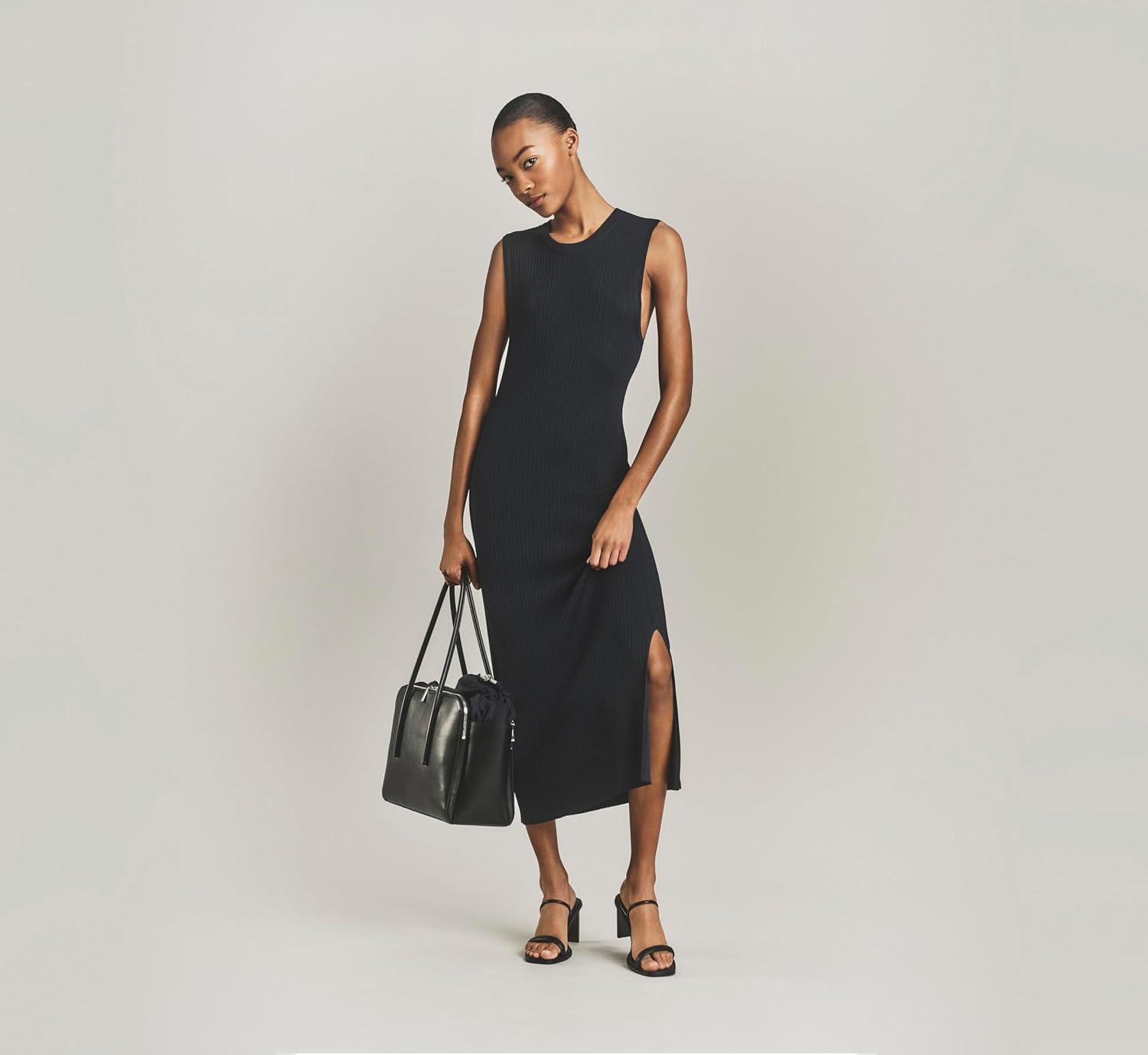 A slim, maxi dress with an open split at one leg. Textured with a ribbed knit for defined detail. Made from 100% viscose for a smooth, fluid feel.