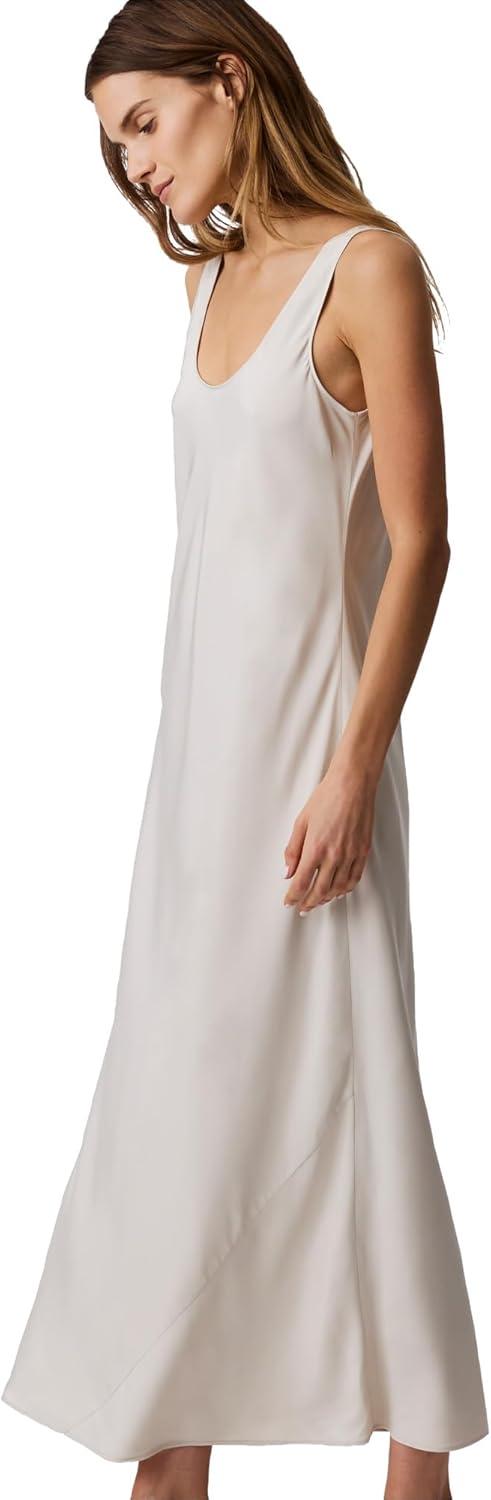 Calvin Klein Women’s Viscose Twill Midi Slip Dress(Oatmeal)