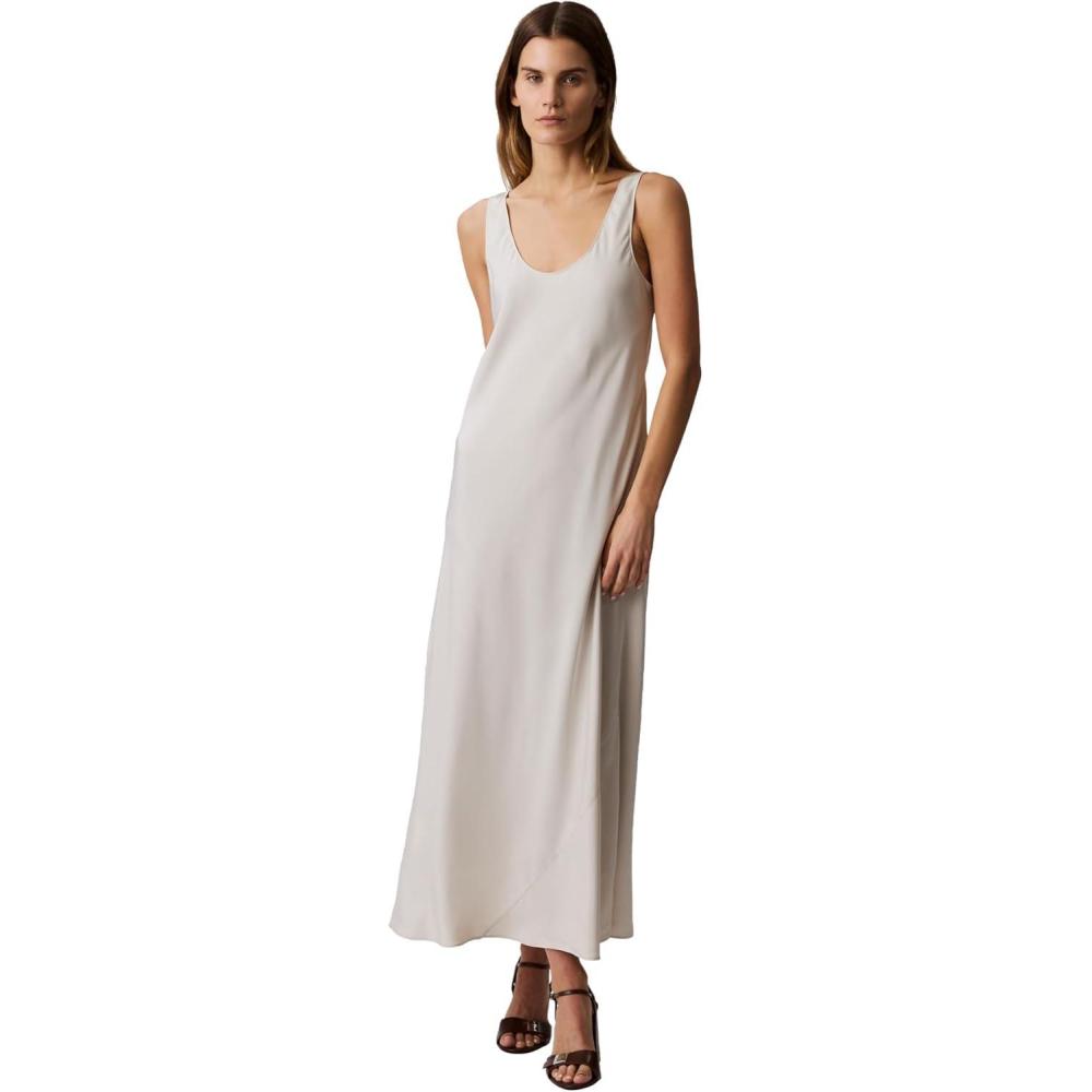 Calvin Klein Women's Viscose Twill Midi Slip Dress(Oatmeal)